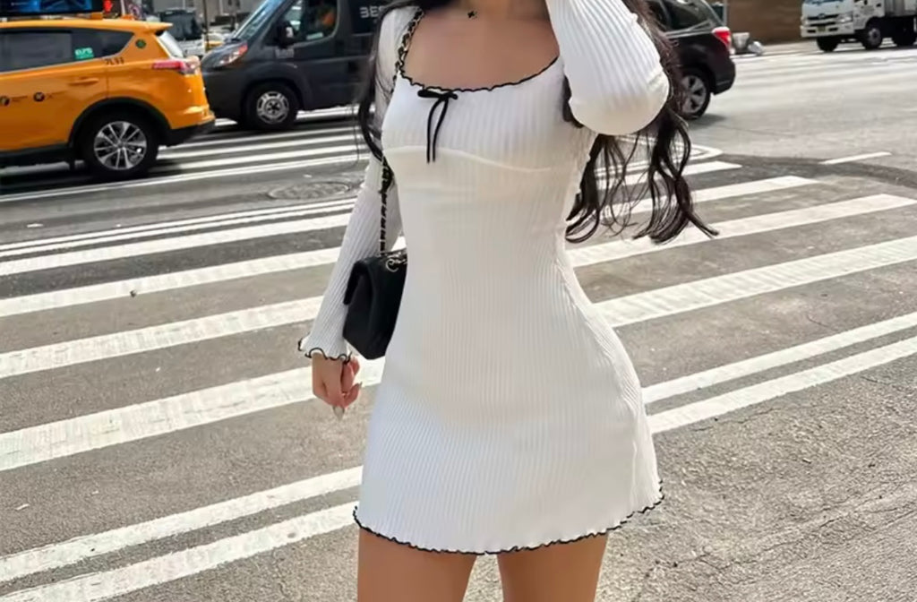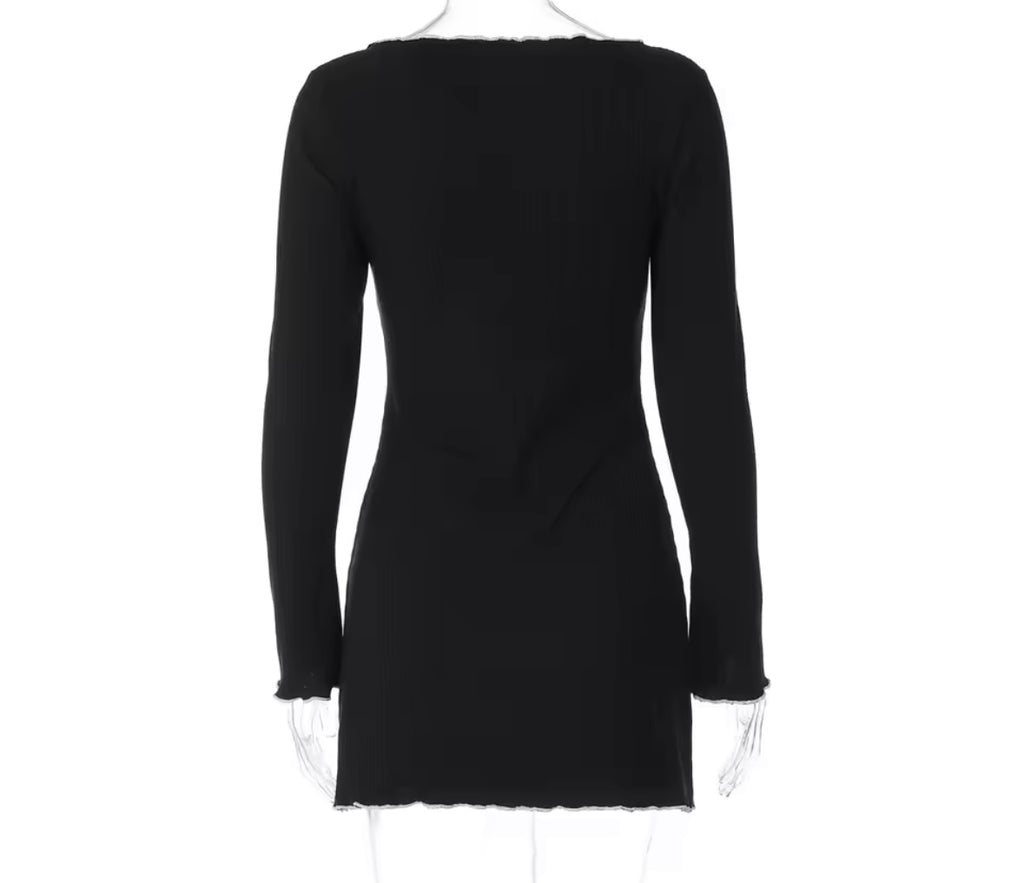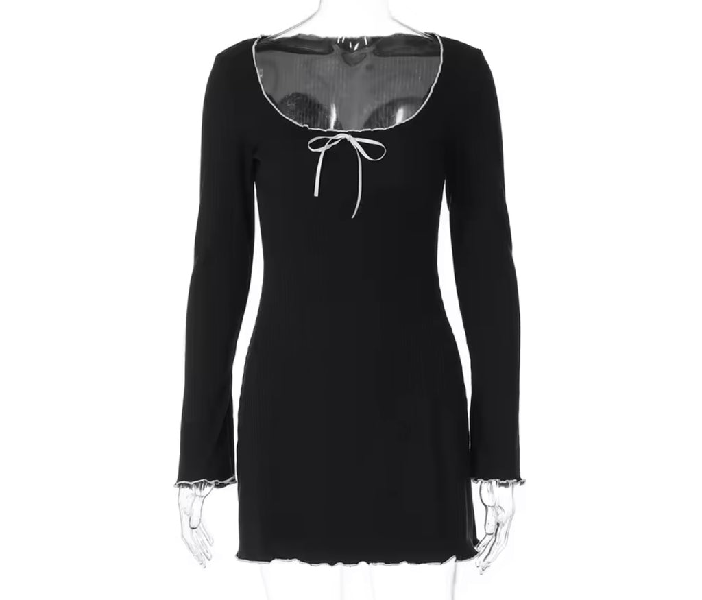Women Sexy Sequins Rhinestone Cut Out Full Sleeve Dress