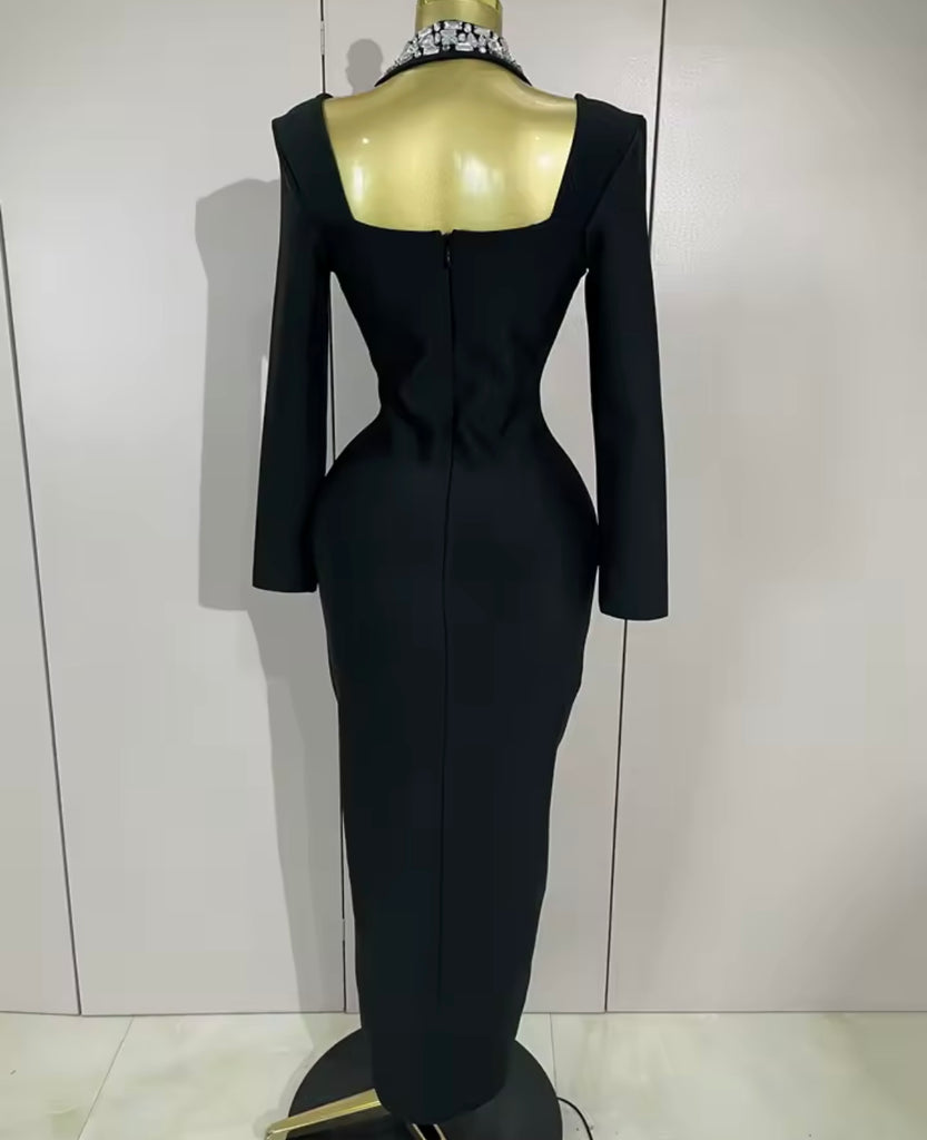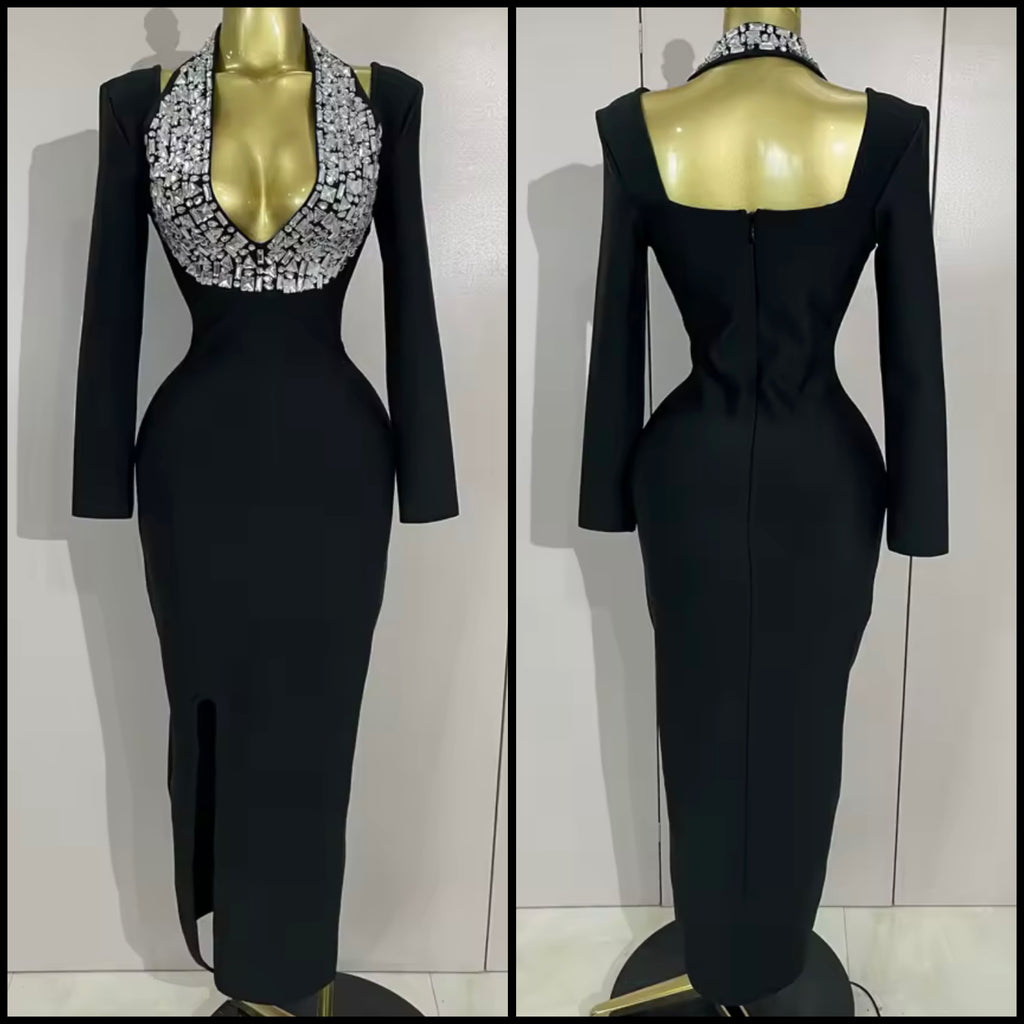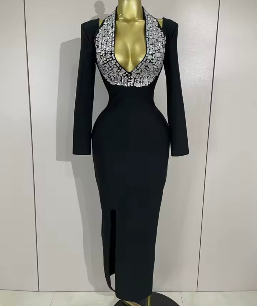 Women Sexy Black Money Print Long Sleeve Mesh Fashion Dress