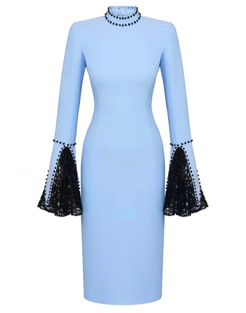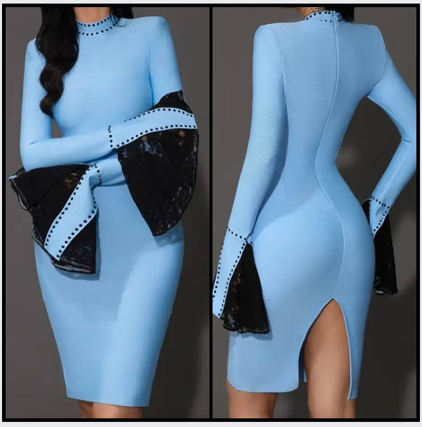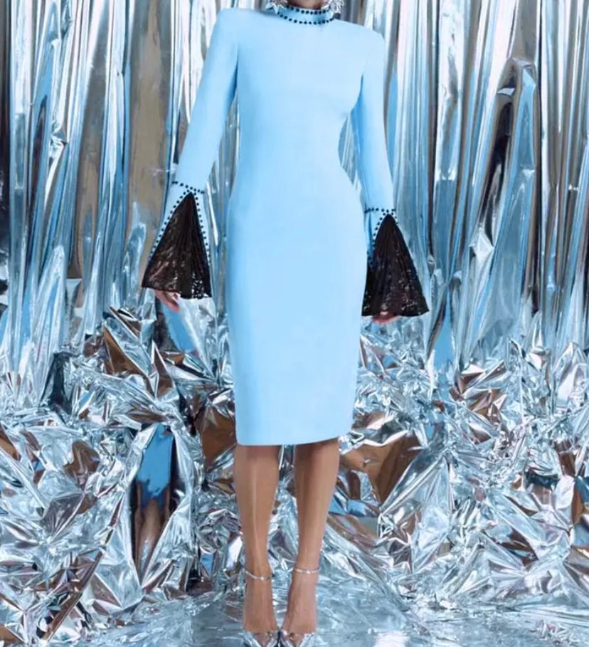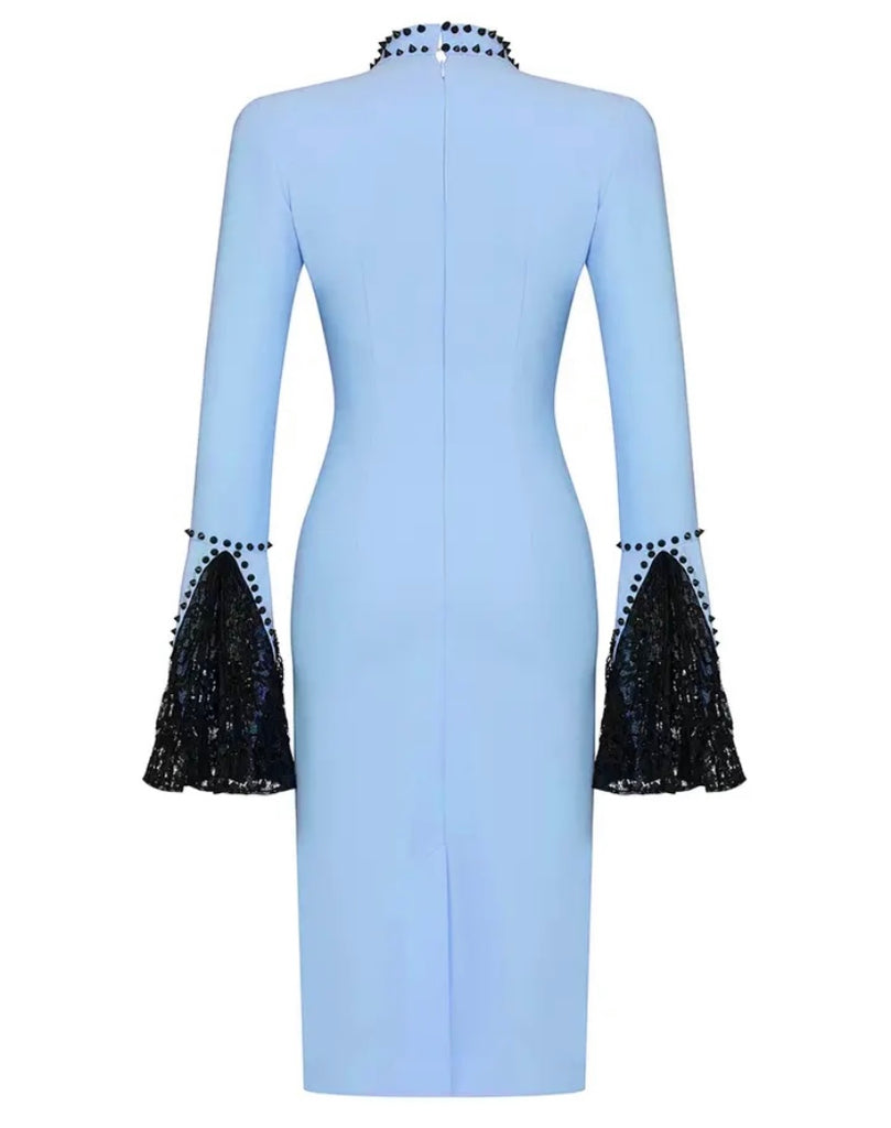Women Sexy Sequins Rhinestone Cut Out Full Sleeve Dress