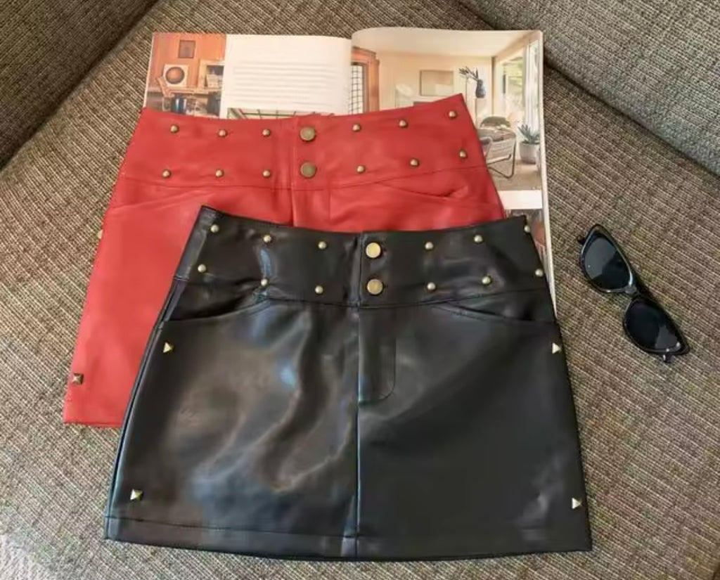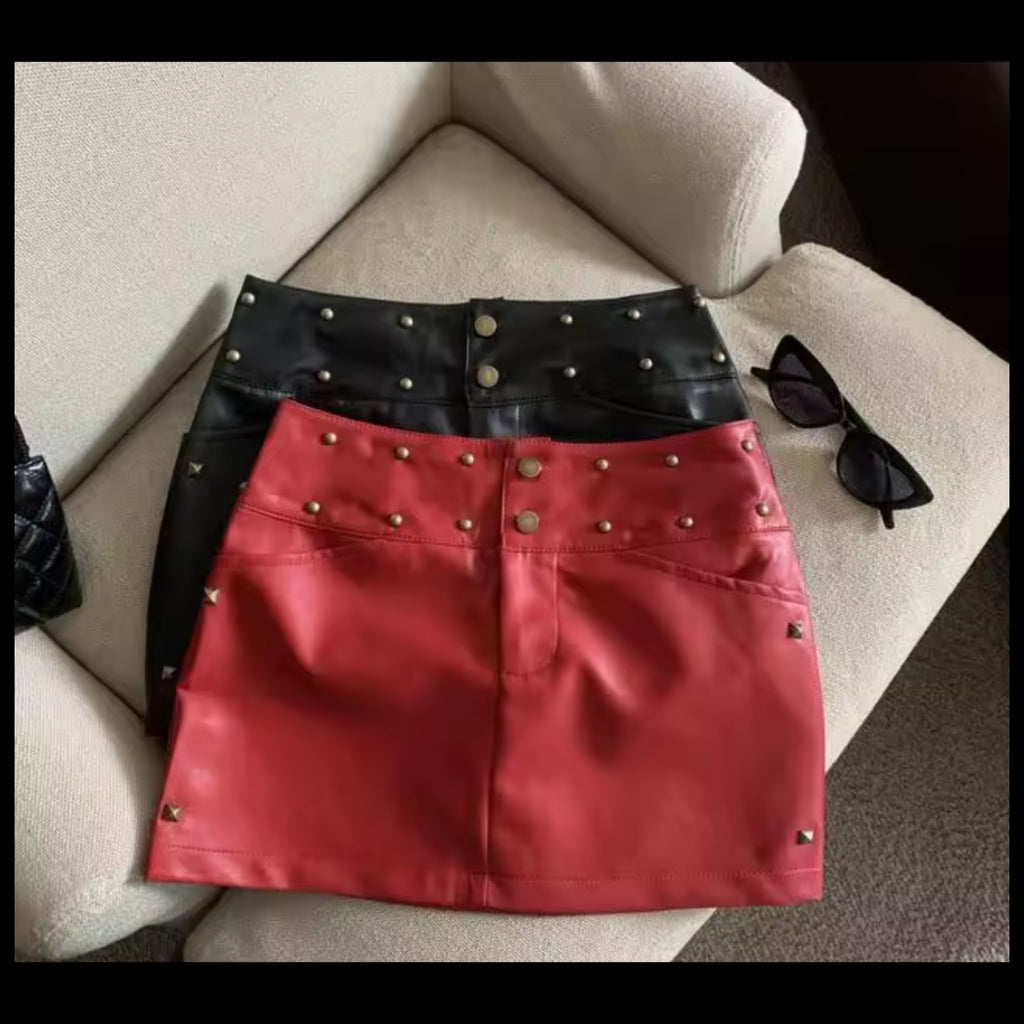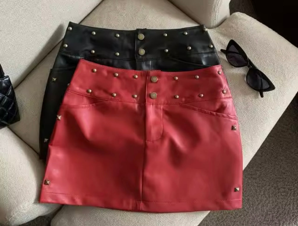 Women Fashion Faux Leather Rivet Skirt