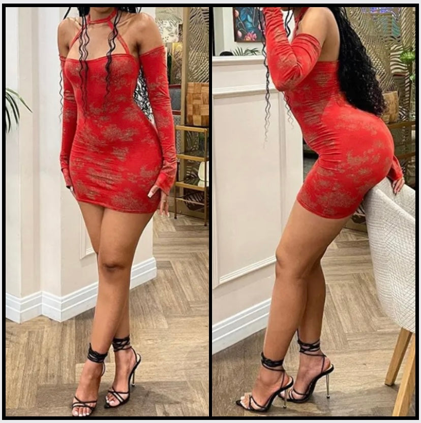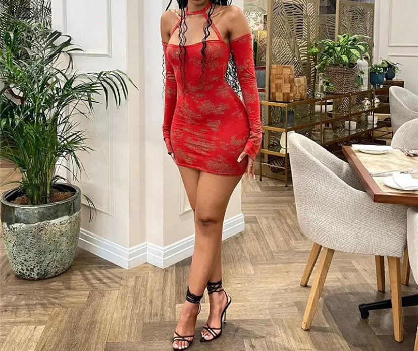 Women Red Printed Halter Sexy Dress