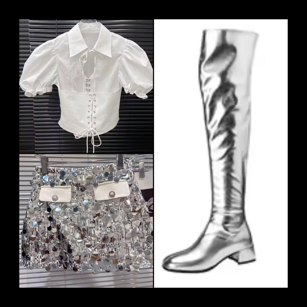 Women Sexy Sequins Rhinestone Cut Out Full Sleeve Dress