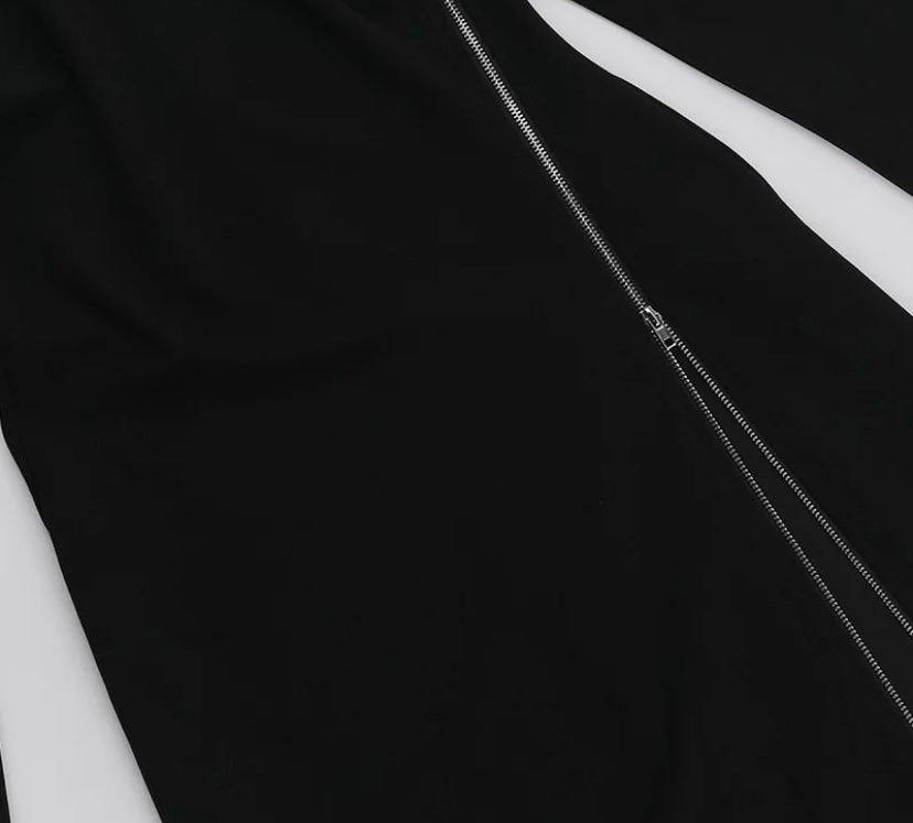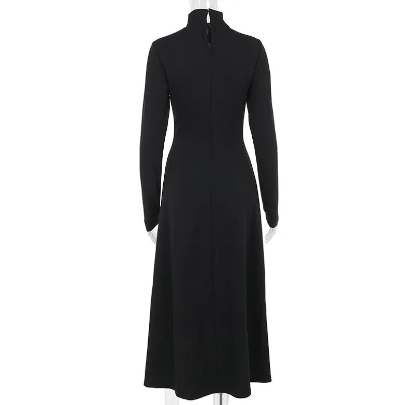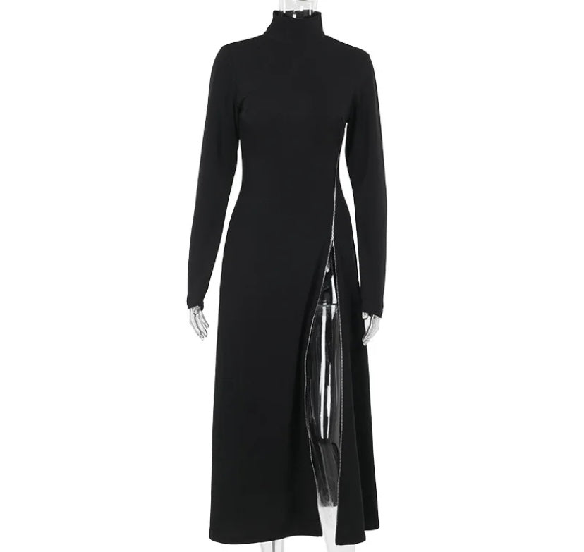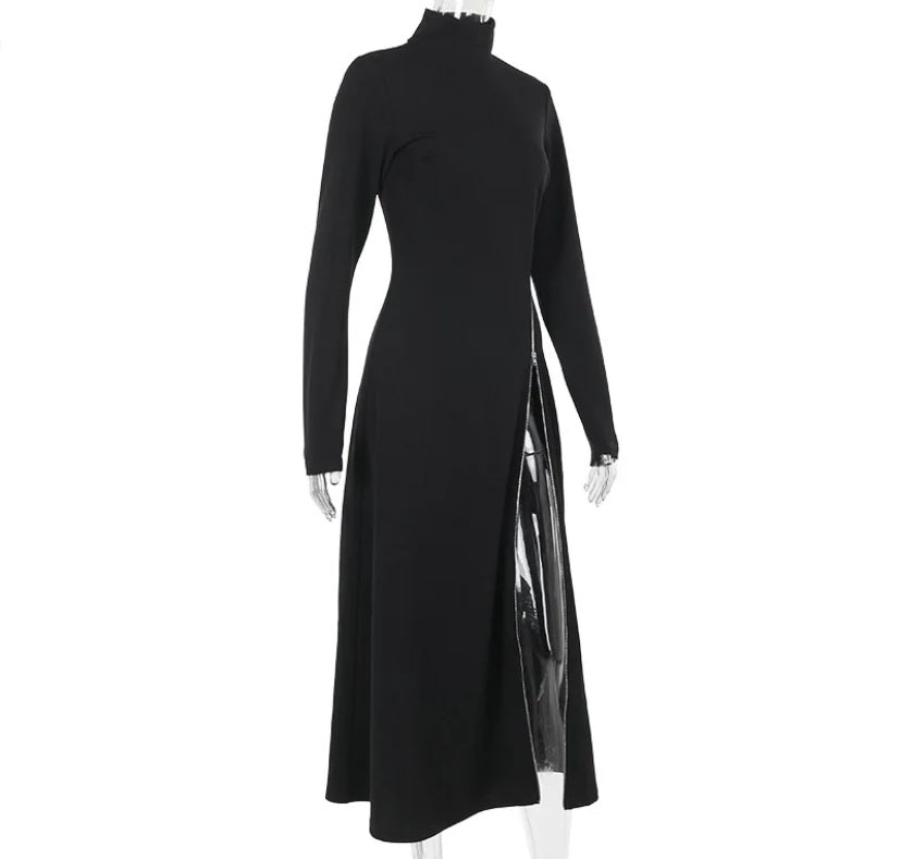 Women Sexy Black Side Zipper Full Sleeve Maxi Dress