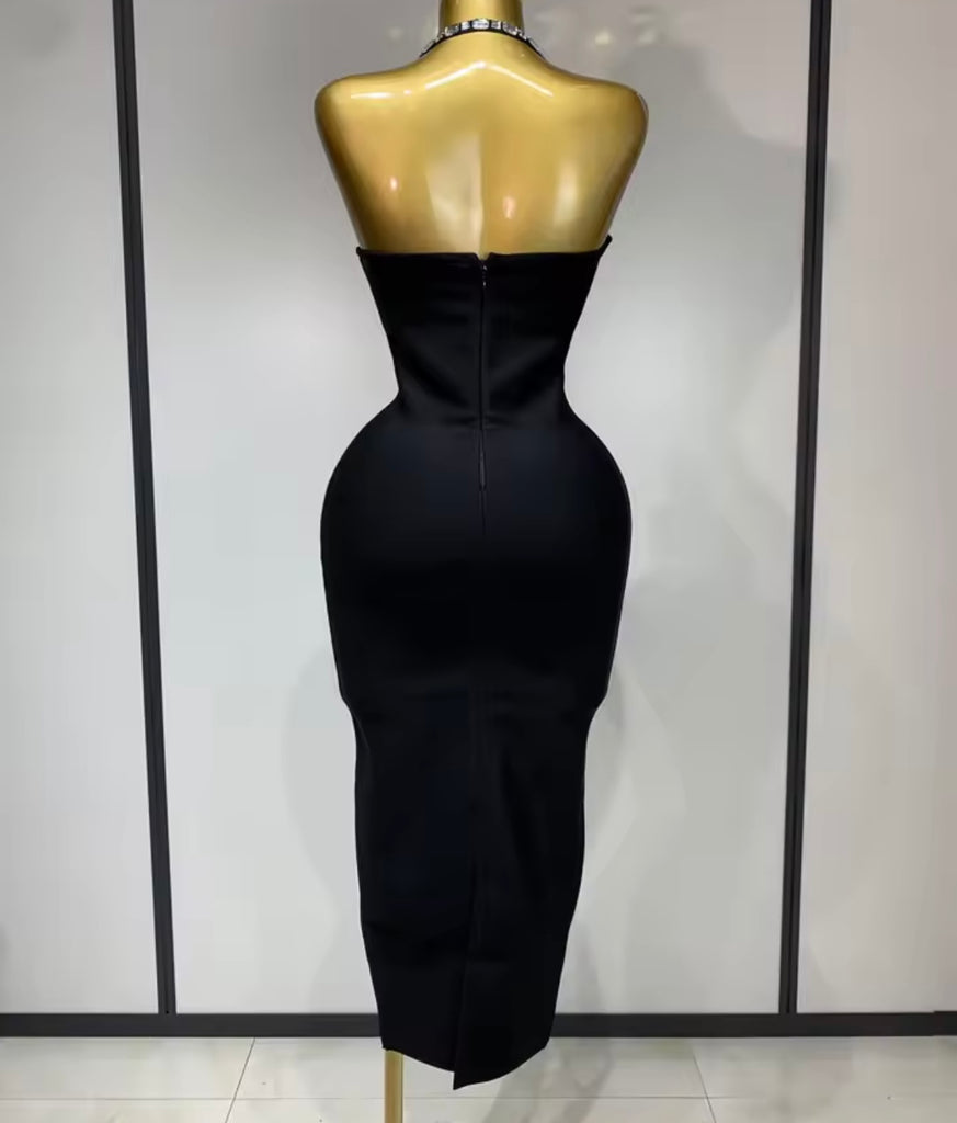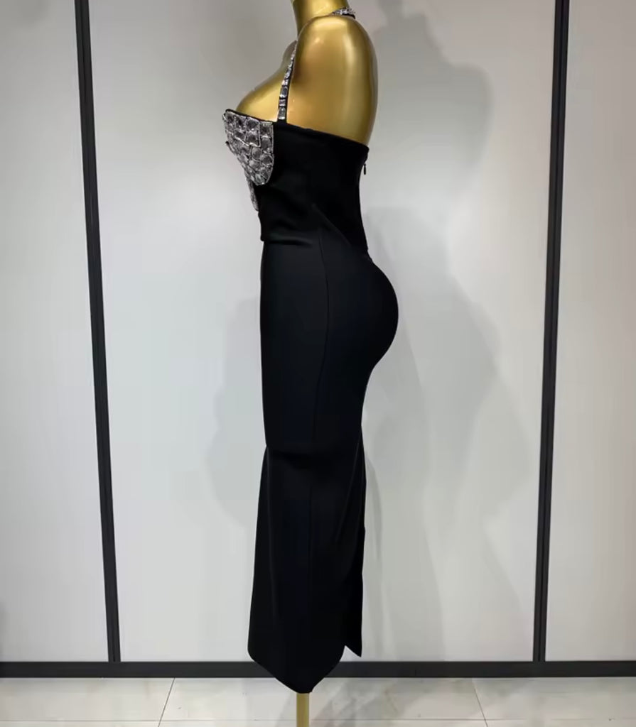 Women Sexy Sequins Rhinestone Cut Out Full Sleeve Dress