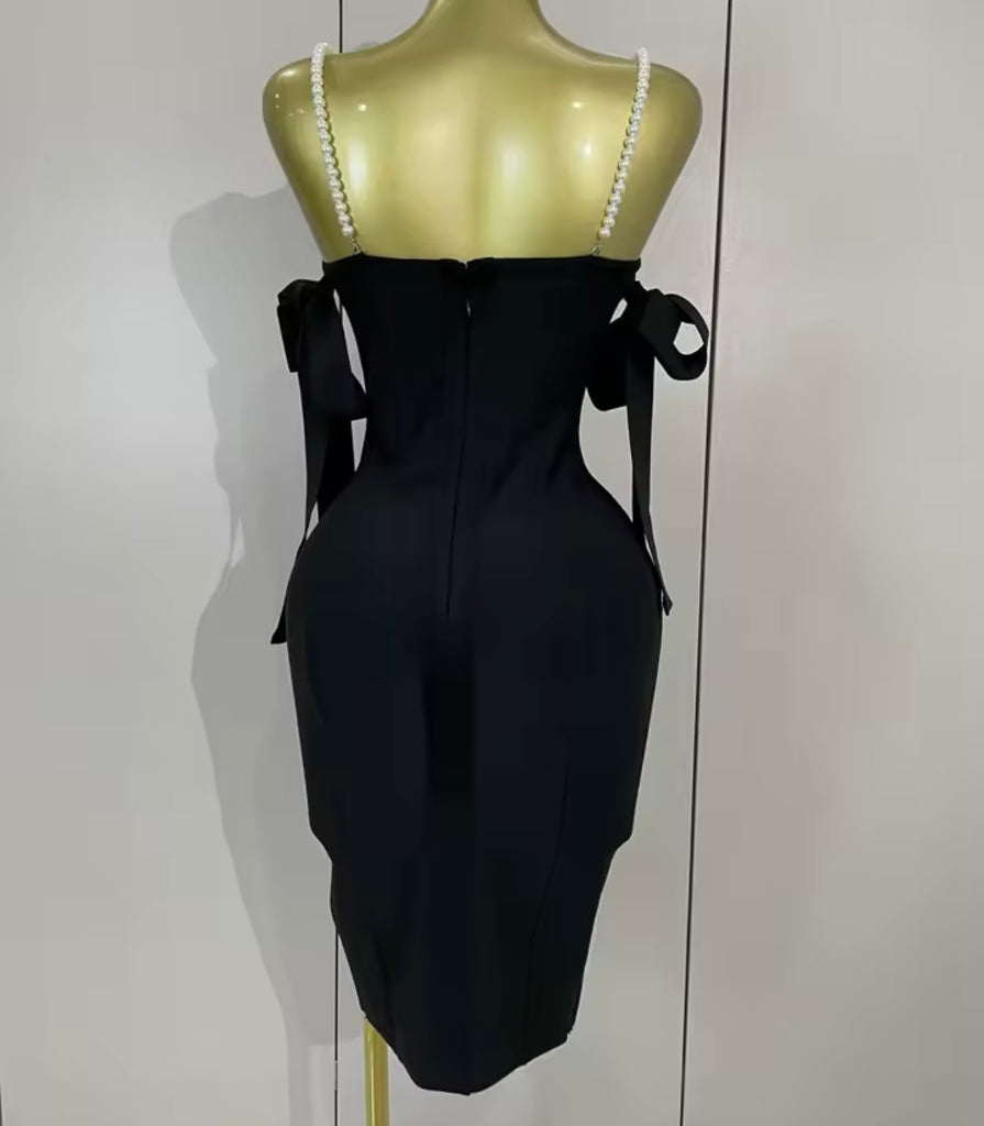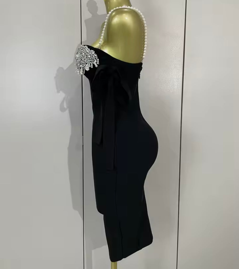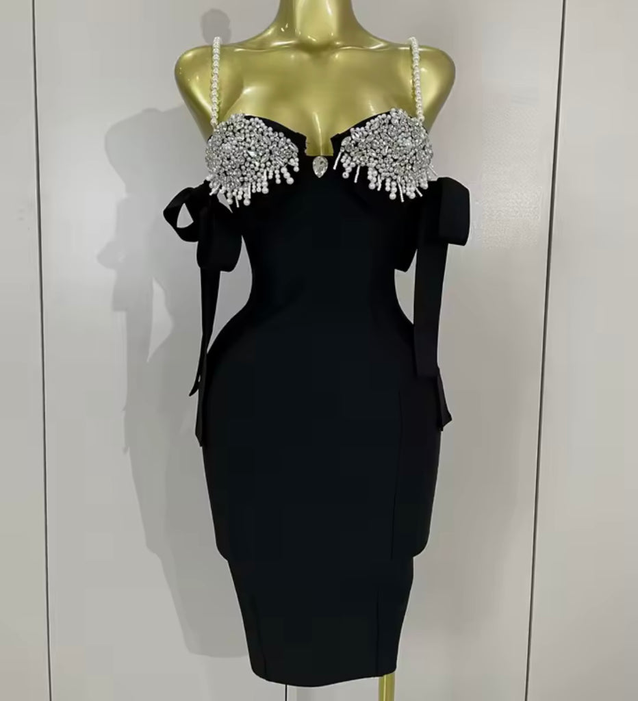 Women Sexy Pearl Rhinestone Sleeveless Bandage Dress