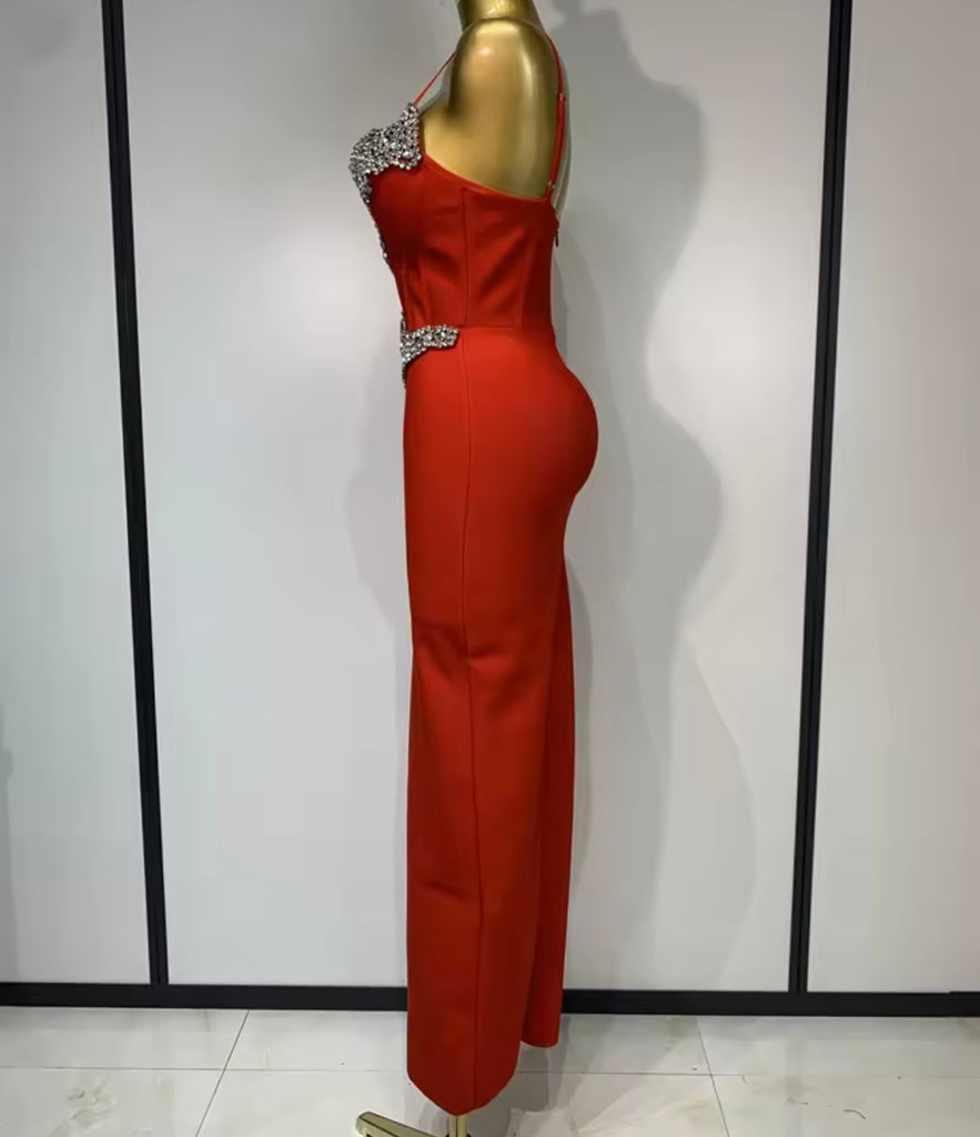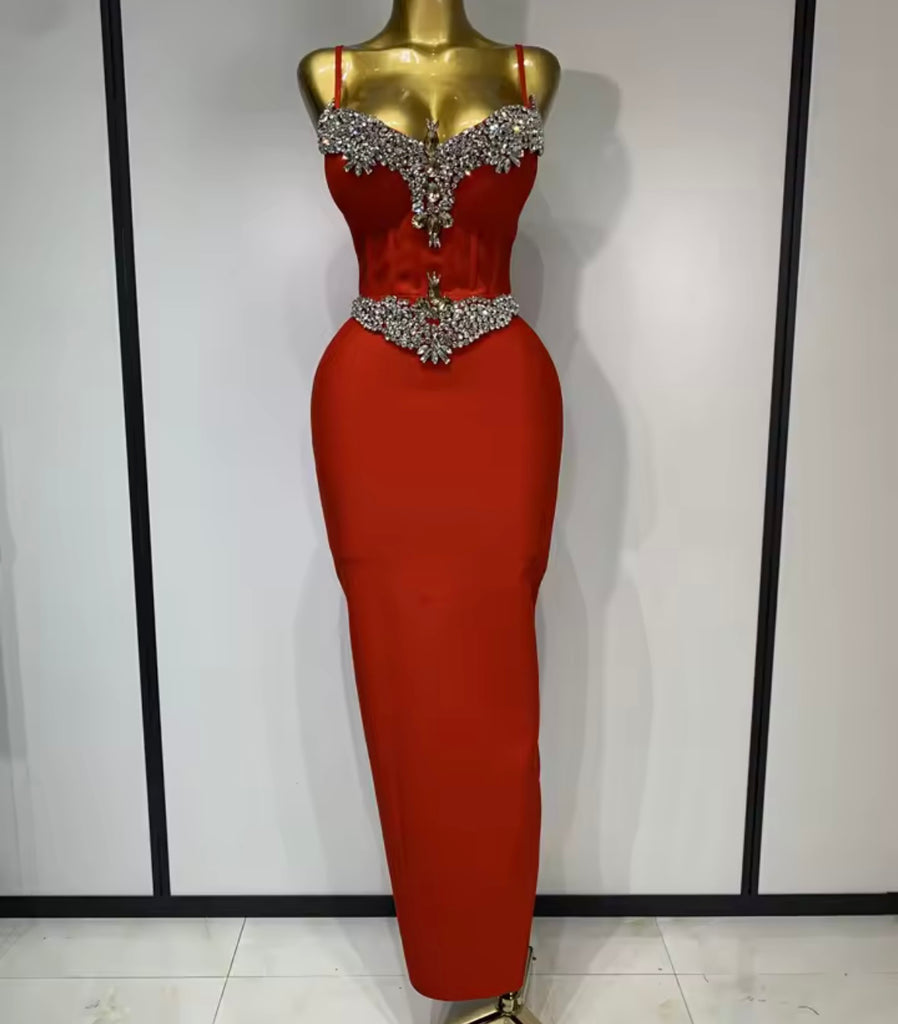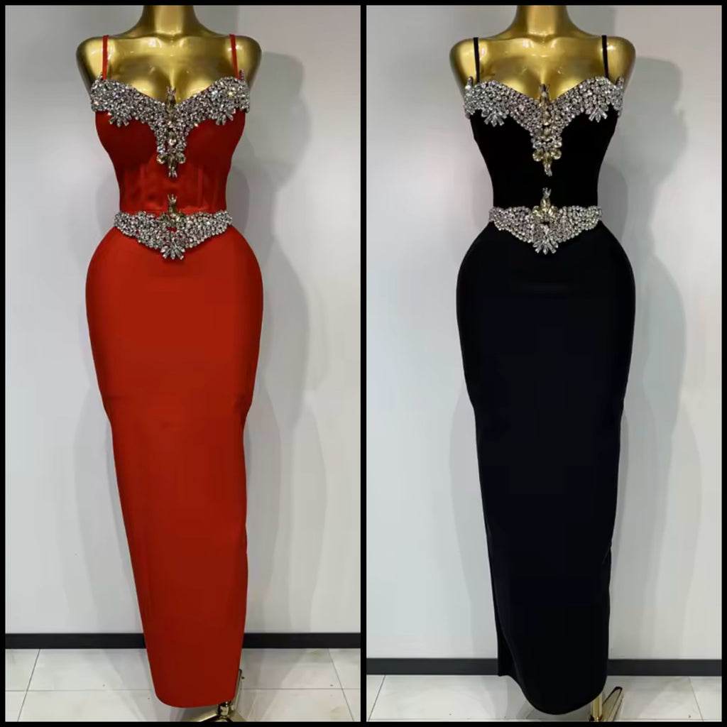 Women Sexy Sleeveless Crystal Rhinestone Maxi Dress