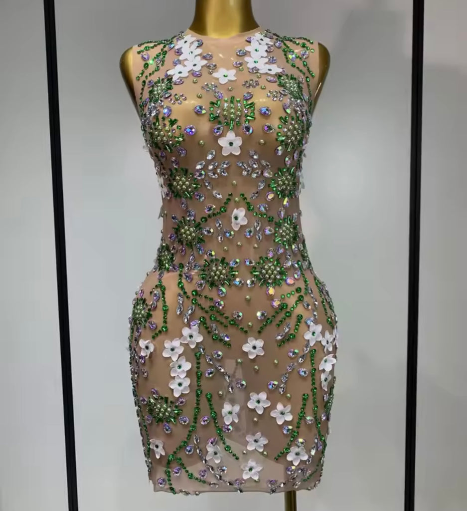 Women Sexy Sequins Rhinestone Cut Out Full Sleeve Dress