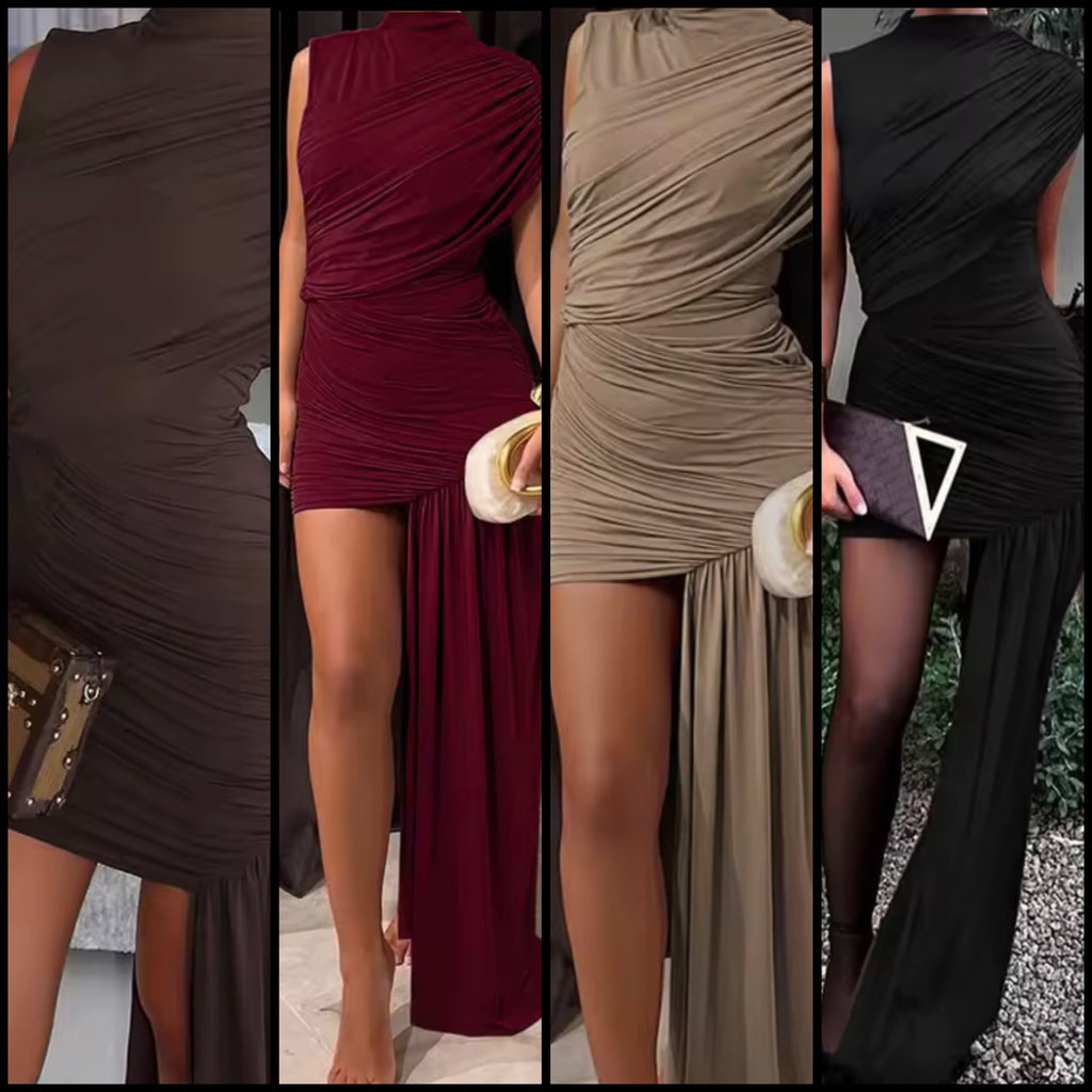 Women Sexy Sleeveless Ruched Tassel Dress