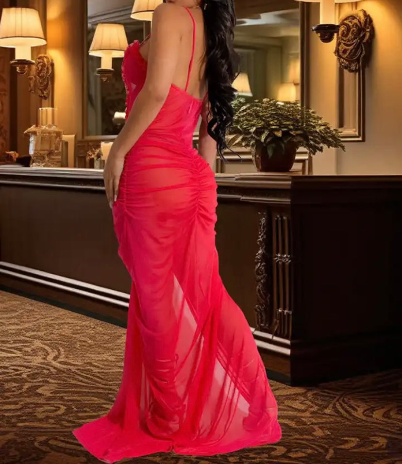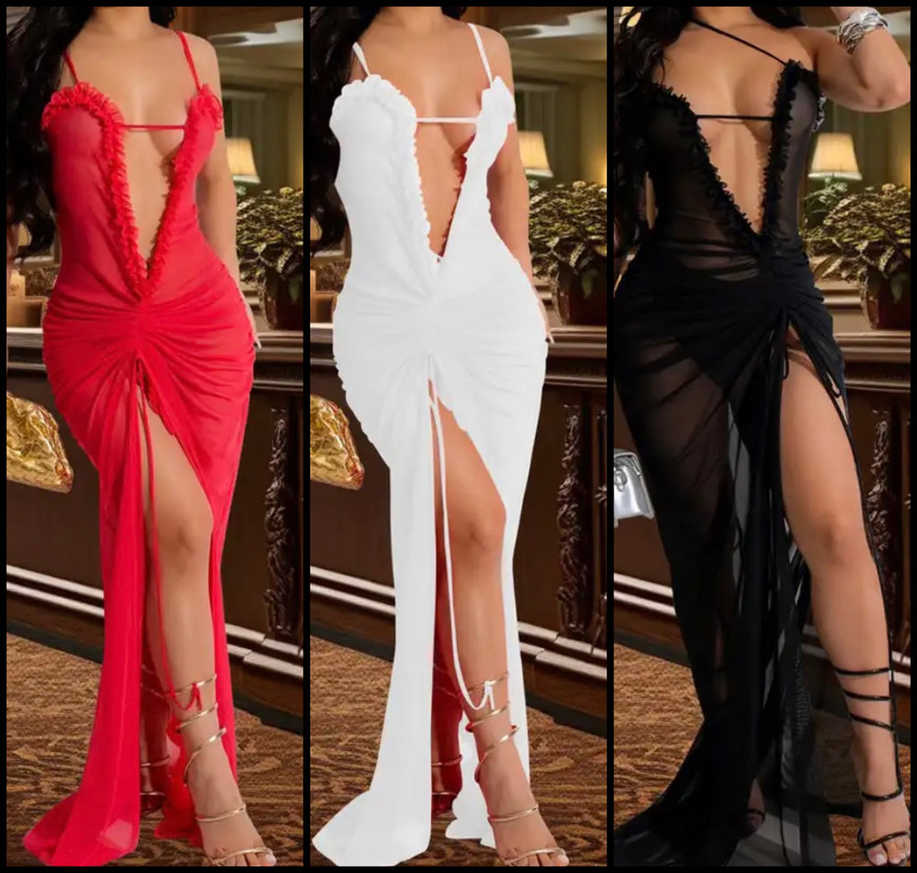Women Colorful Mesh Sexy Long Sleeve Mini Dress