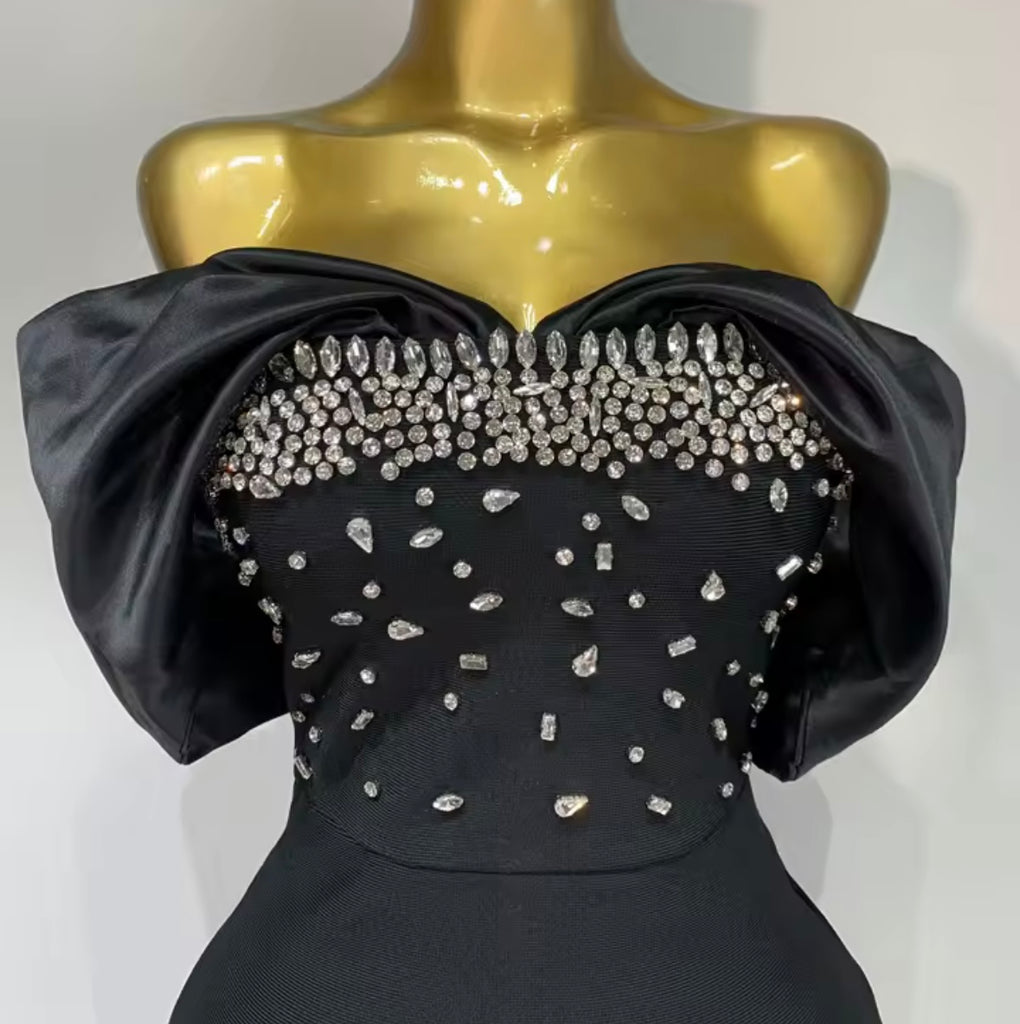 Women Sexy Sequins Rhinestone Cut Out Full Sleeve Dress
