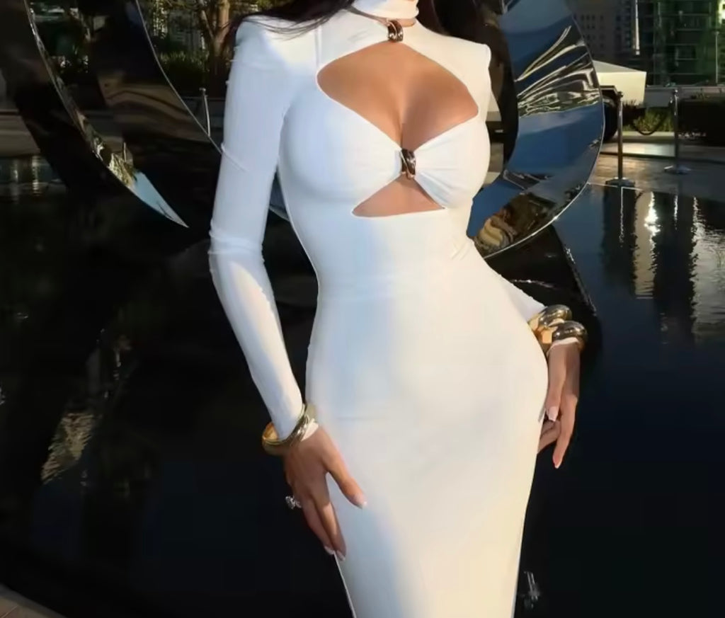 Women Sexy Black Money Print Long Sleeve Mesh Fashion Dress