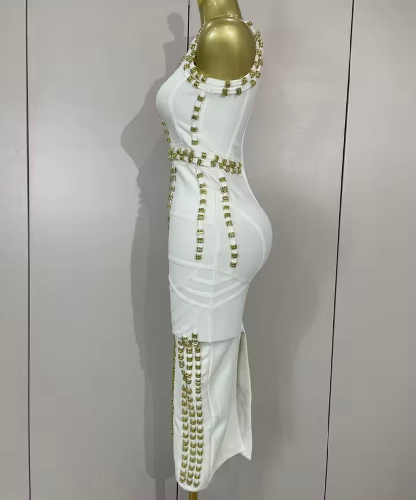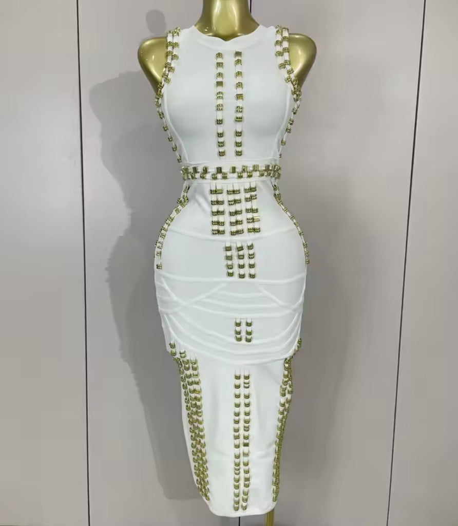 Women Sexy V-Neck Full Sleeve Metal Cut Out Maxi Dress