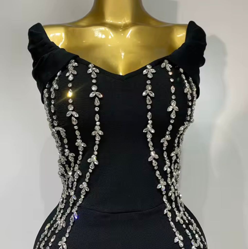 Women  Rhinestone Patchwork Sexy Sleeveless Bandage Dress