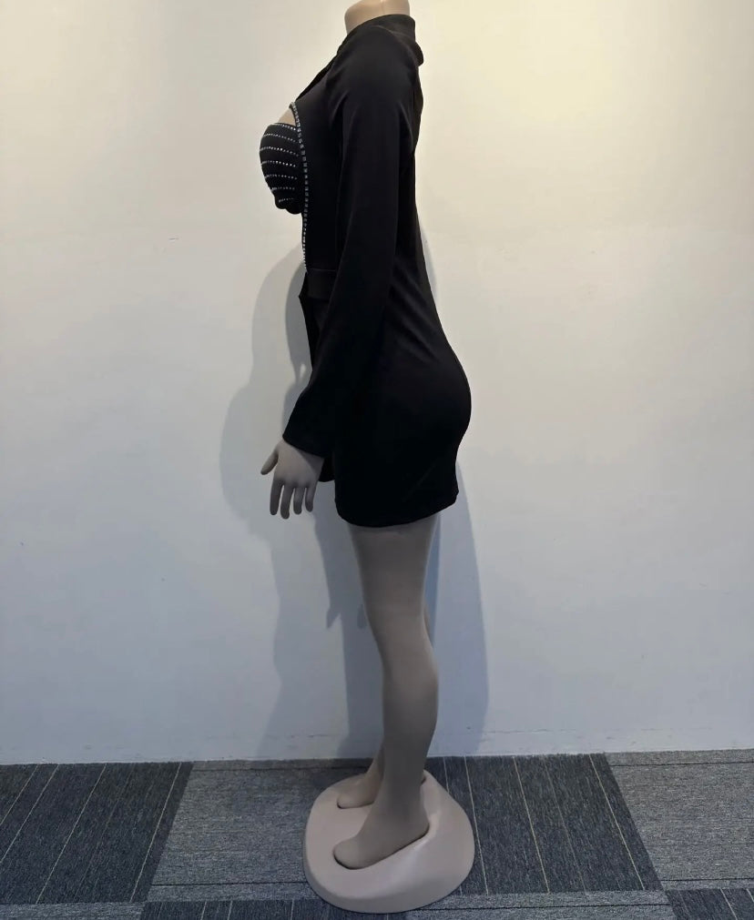 Women Full Sleeve Heart Cut Out Bling Blazer Sexy Dress