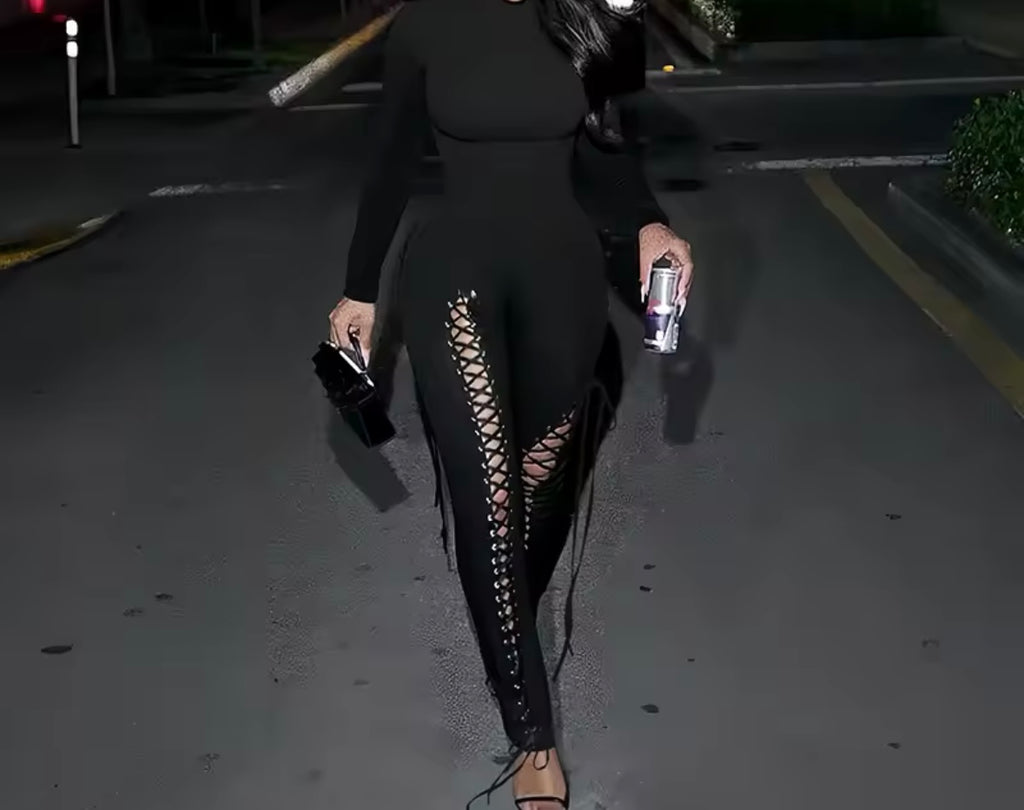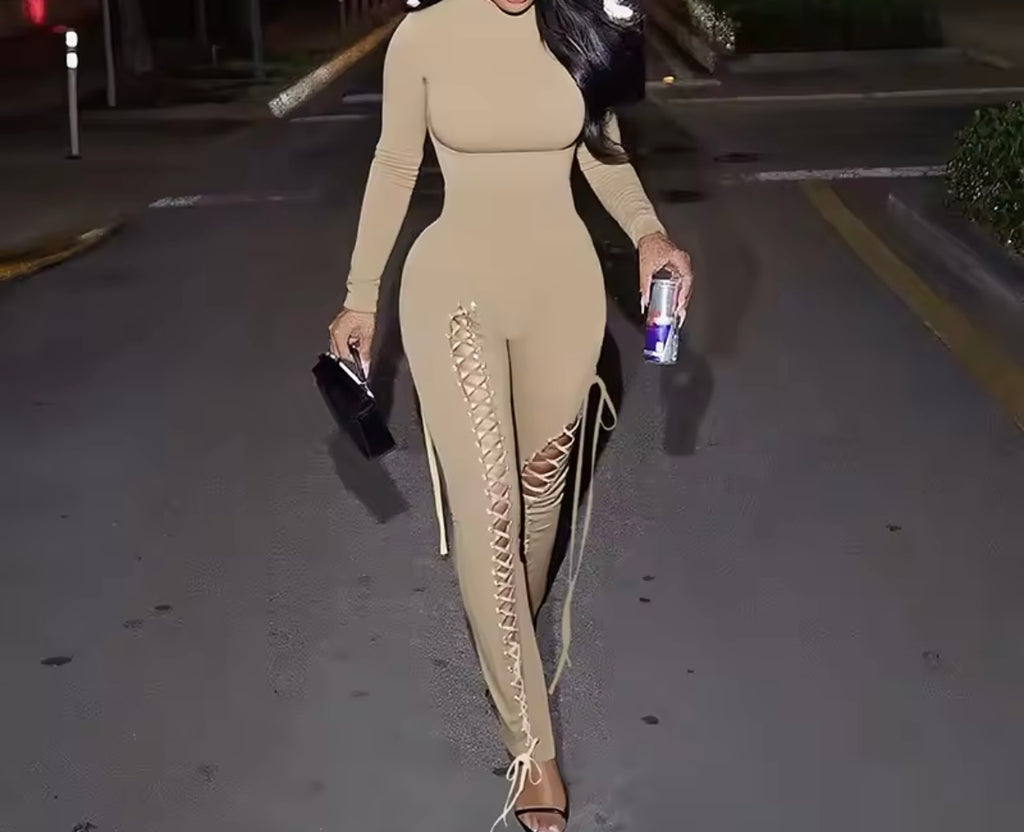 Women Sexy Neon Lace Up Sleeveless Jumpsuit