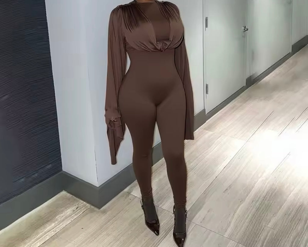 Women Sexy Fashion Color Patchwork Full Sleeve Romper
