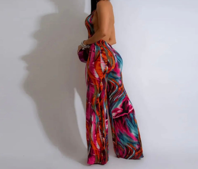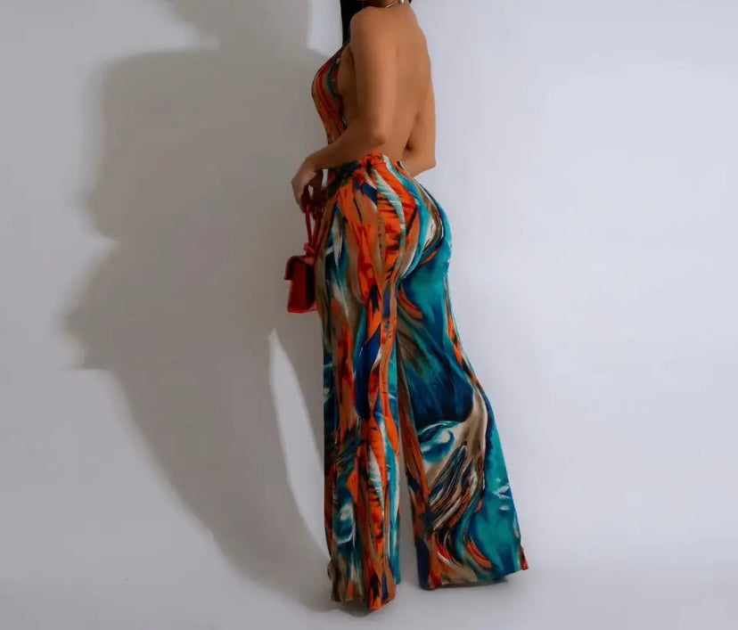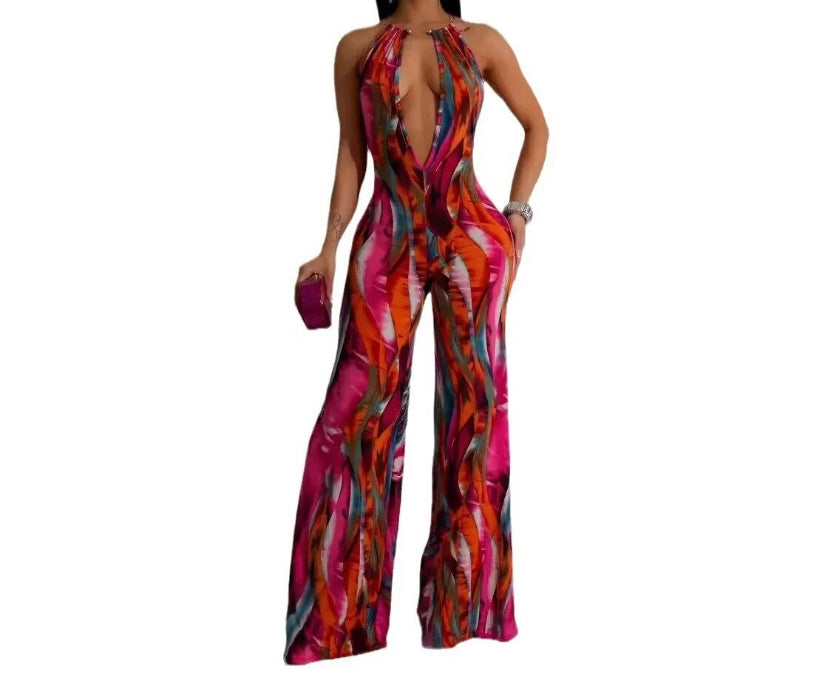 Women Sexy Colorful Print Halter Sleeveless Sexy Jumpsuit