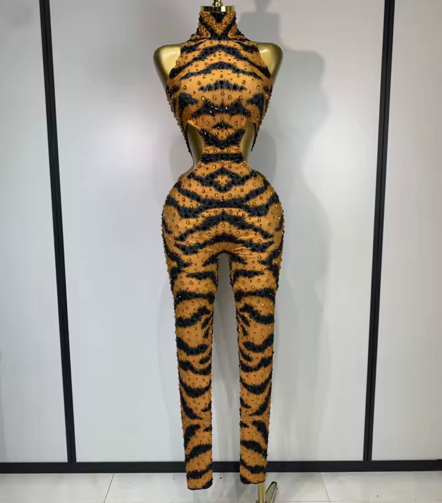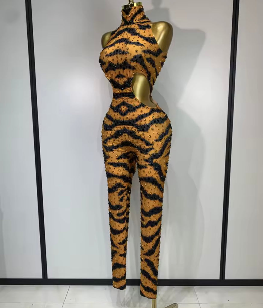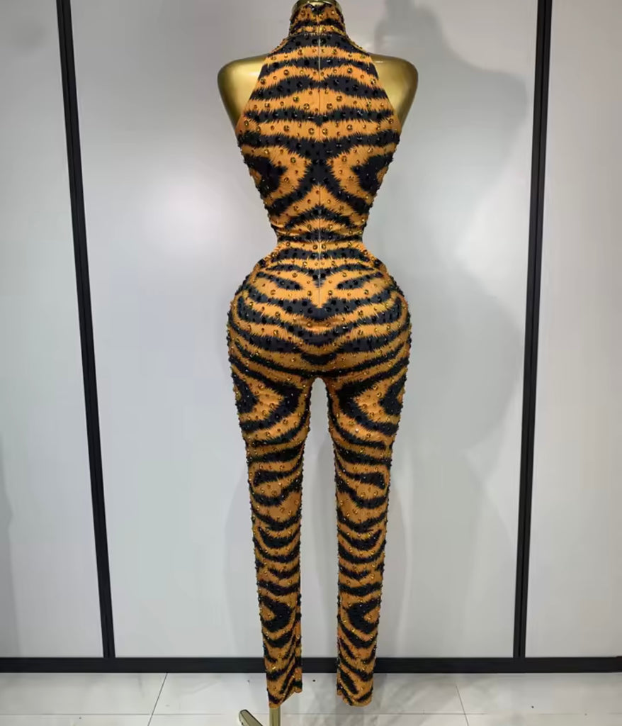 Women Fashion Sleeveless Tie Dye Skinny Jumpsuit