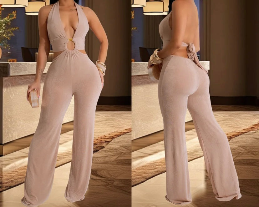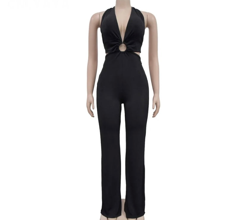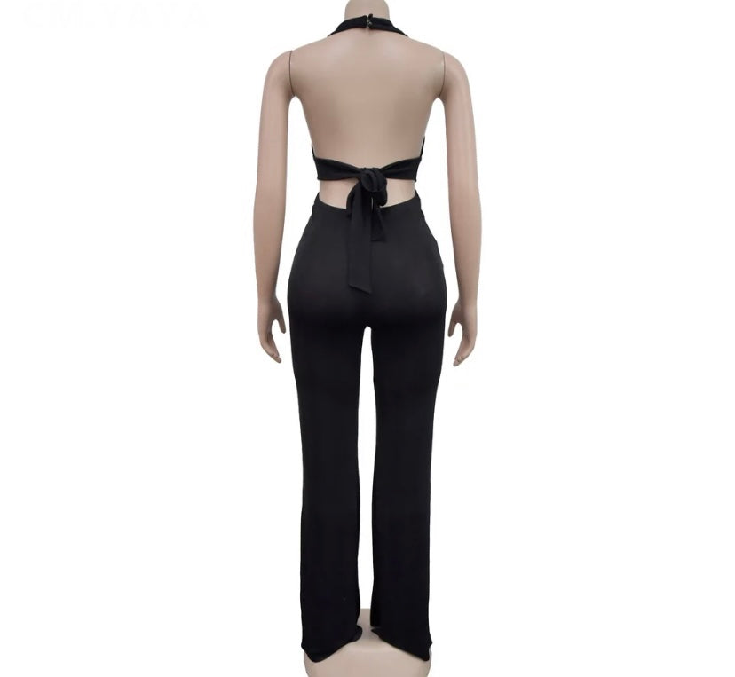Women Sexy Sleeveless Solid Color Open Tie Up Back Jumpsuit