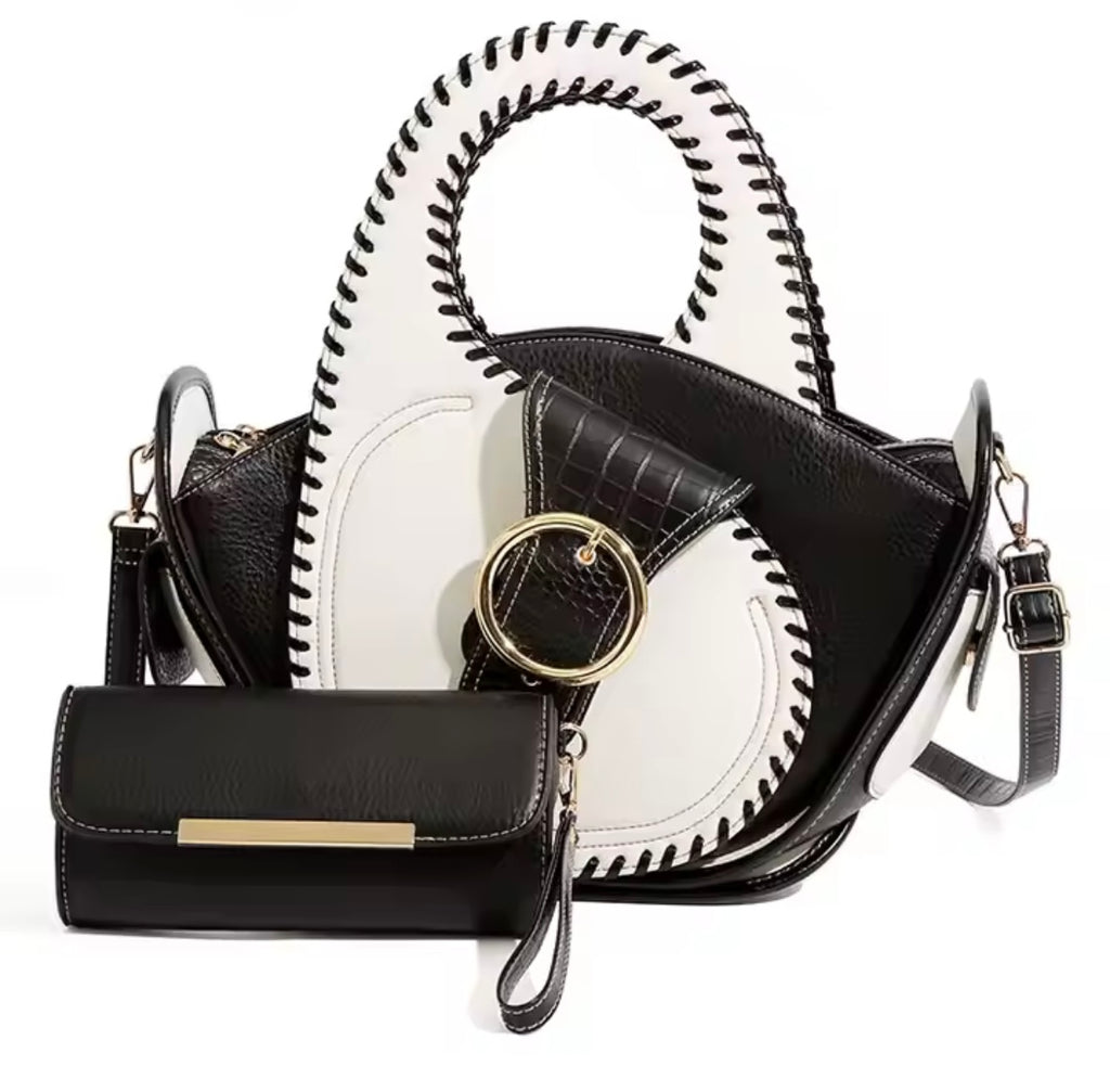 Women Fashion Color Patchwork Buckled Leather Wallet Purse Se