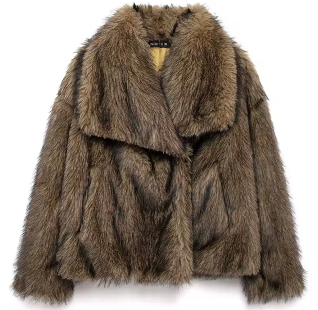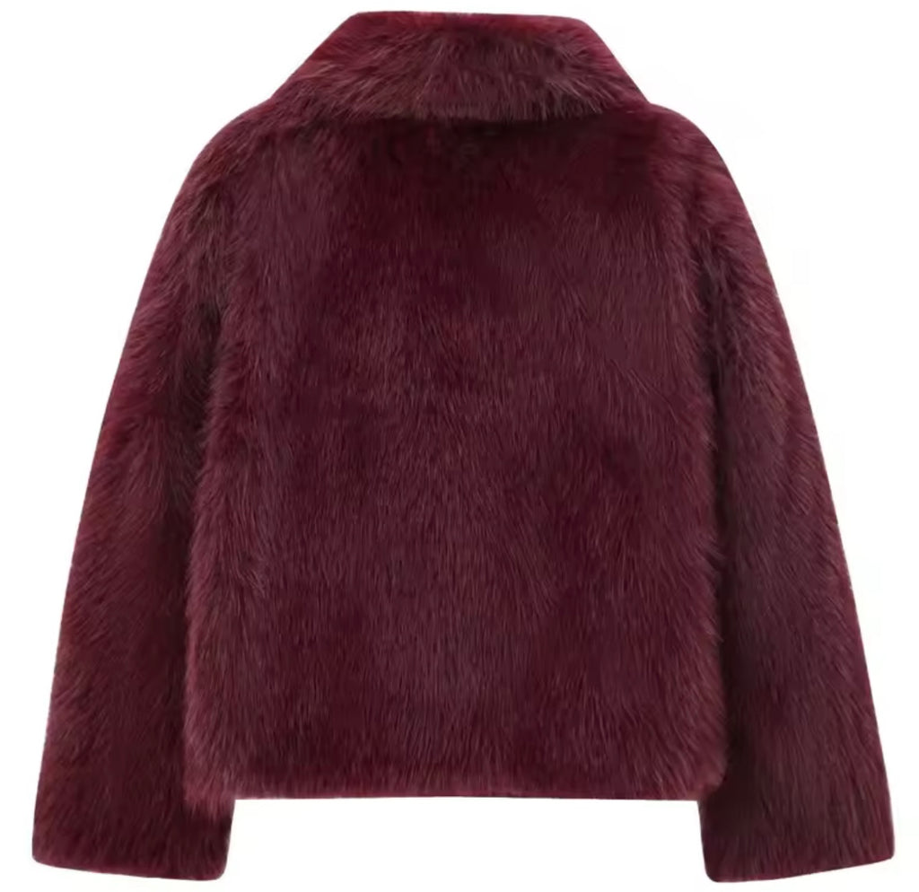 Women Color Fashion Faux Fur Warm Jacket