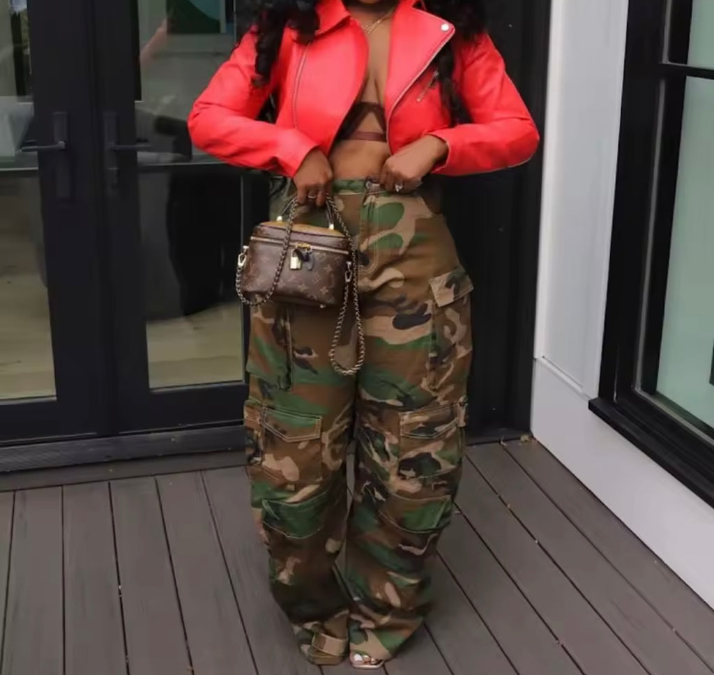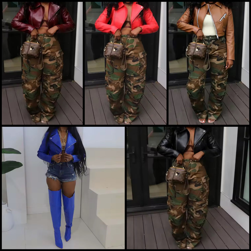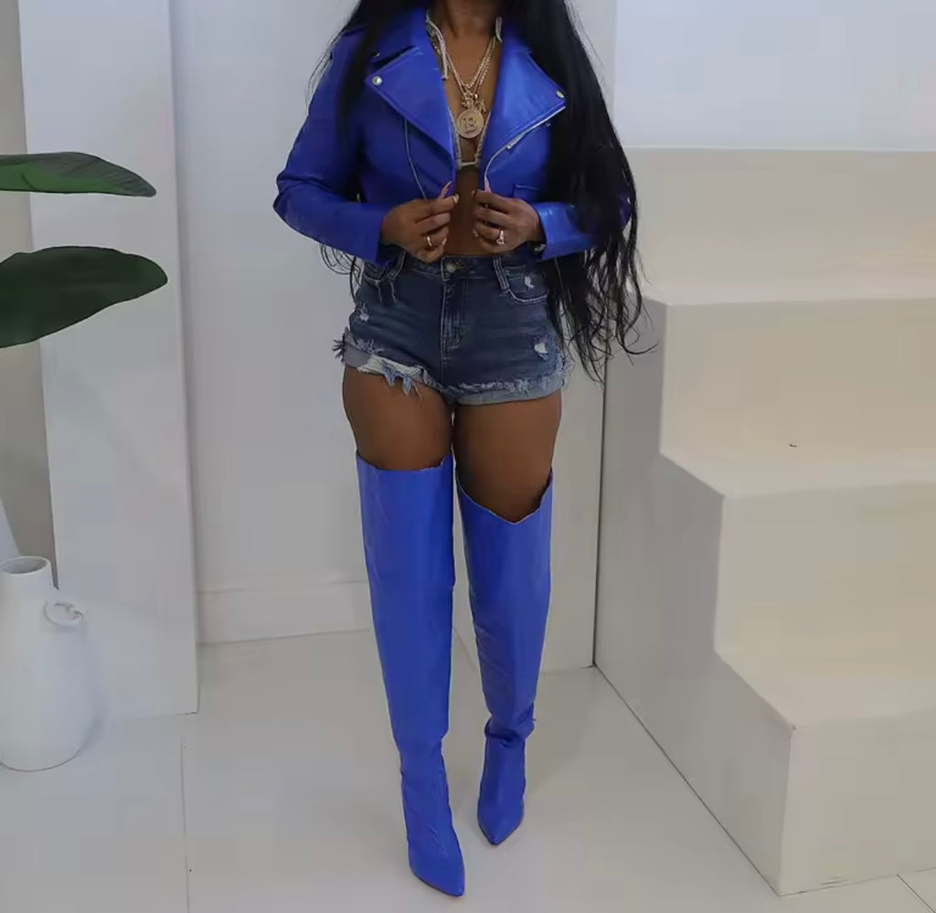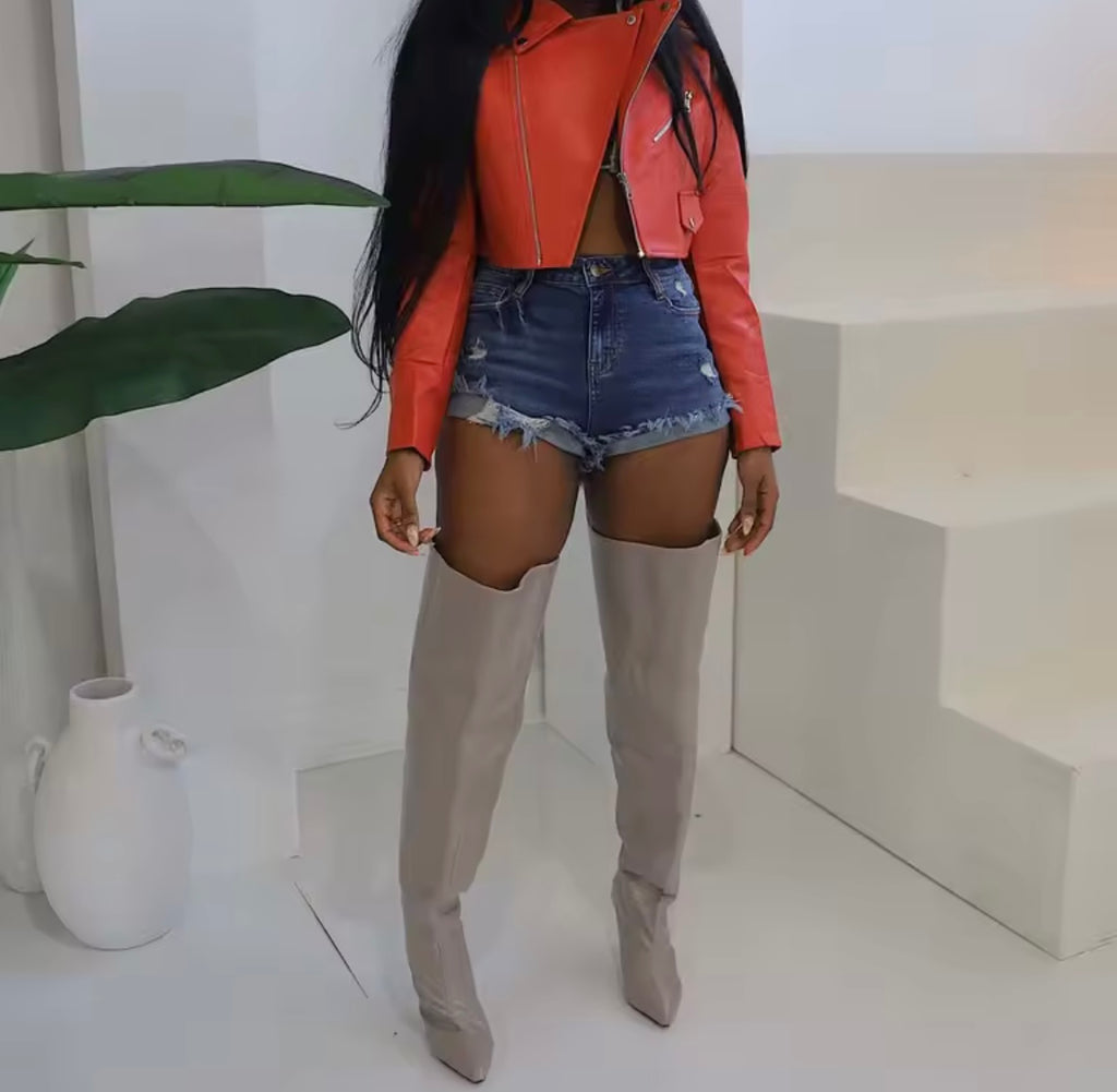 Women Fashion Striped Zip Up Crop PU Jacket