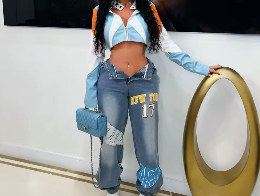 Women Fashion Fur Patchwork Denim Jacket