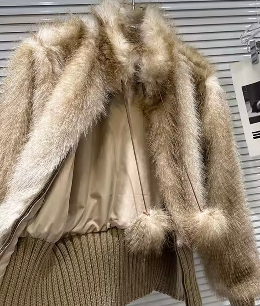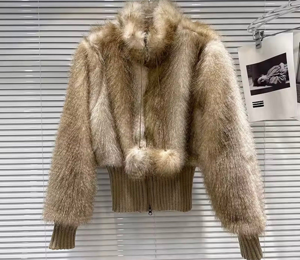 Women Fashion Fur Patchwork Denim Jacket