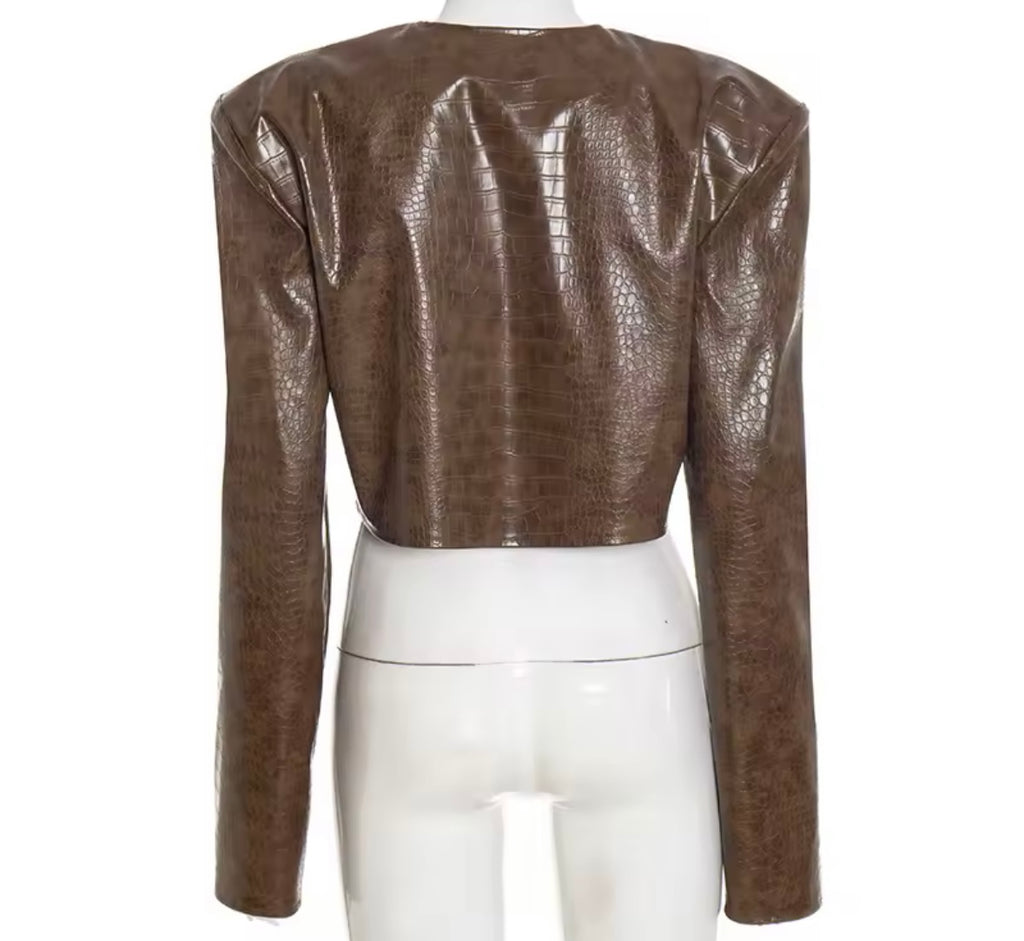 Women Fashion PU Letter Print Crop Jacket