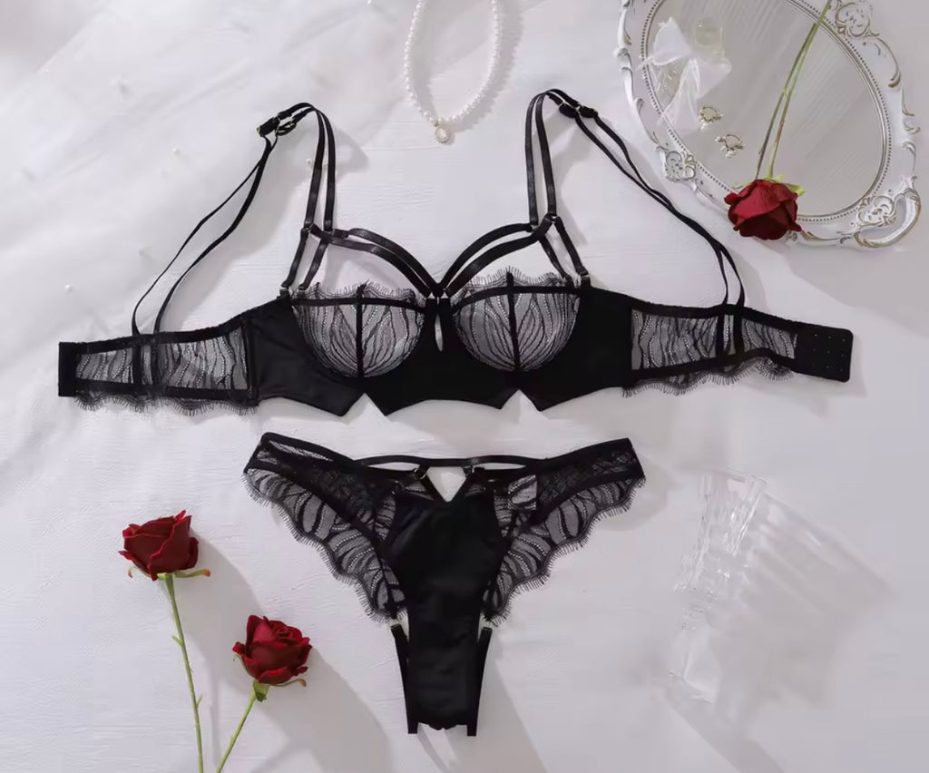 Women Sexy Sleeveless Heart Mesh Lingerie Set