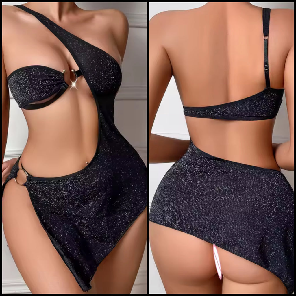 Women Sexy Red Heart Cut Out Lingerie Set