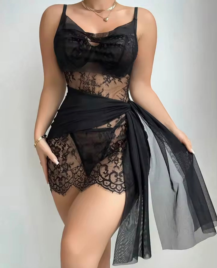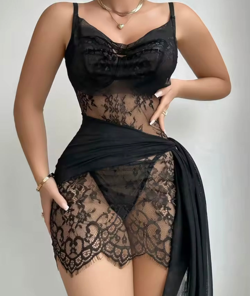 Women White Sexy Cut Out Glove Mesh Lingerie Set