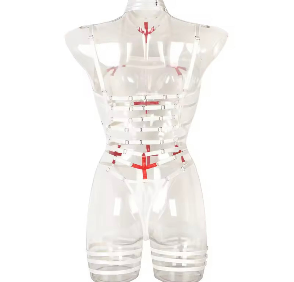 Women White Sexy Cut Out Glove Mesh Lingerie Set
