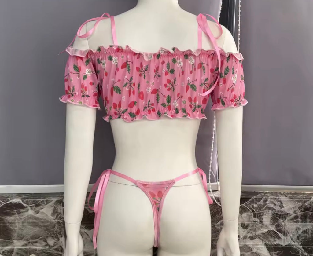 Women Sexy Sleeveless Heart Mesh Lingerie Set