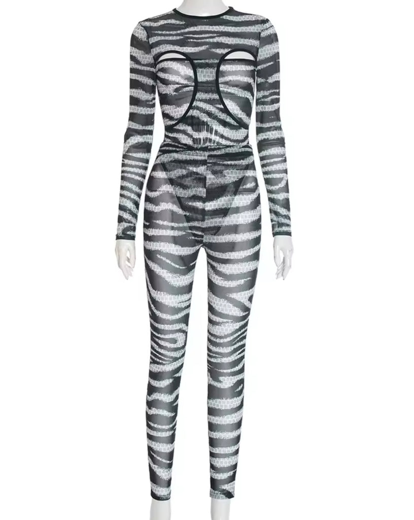 Women Printed Two Piece Fashion Long Sleeve Pant Set