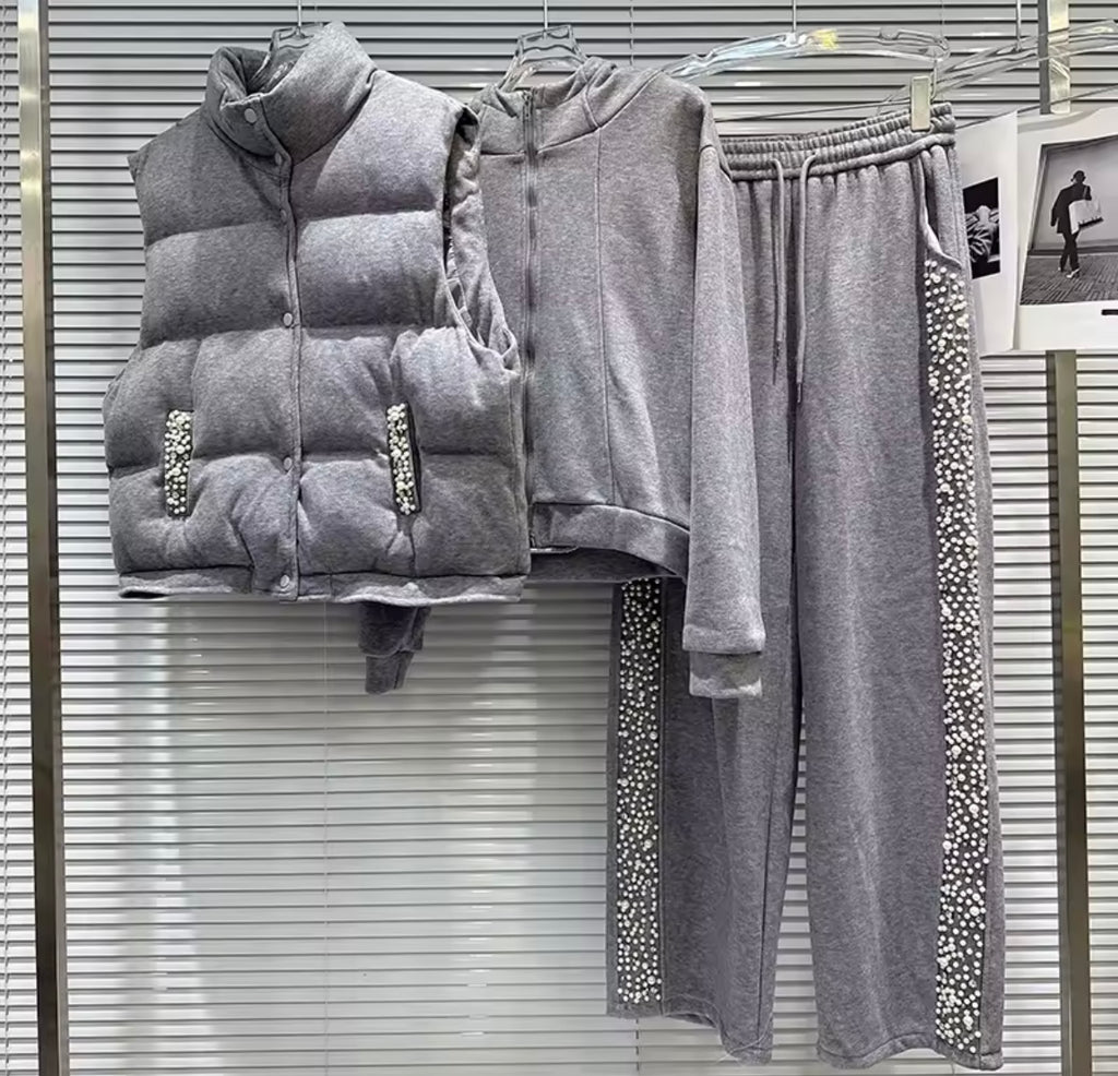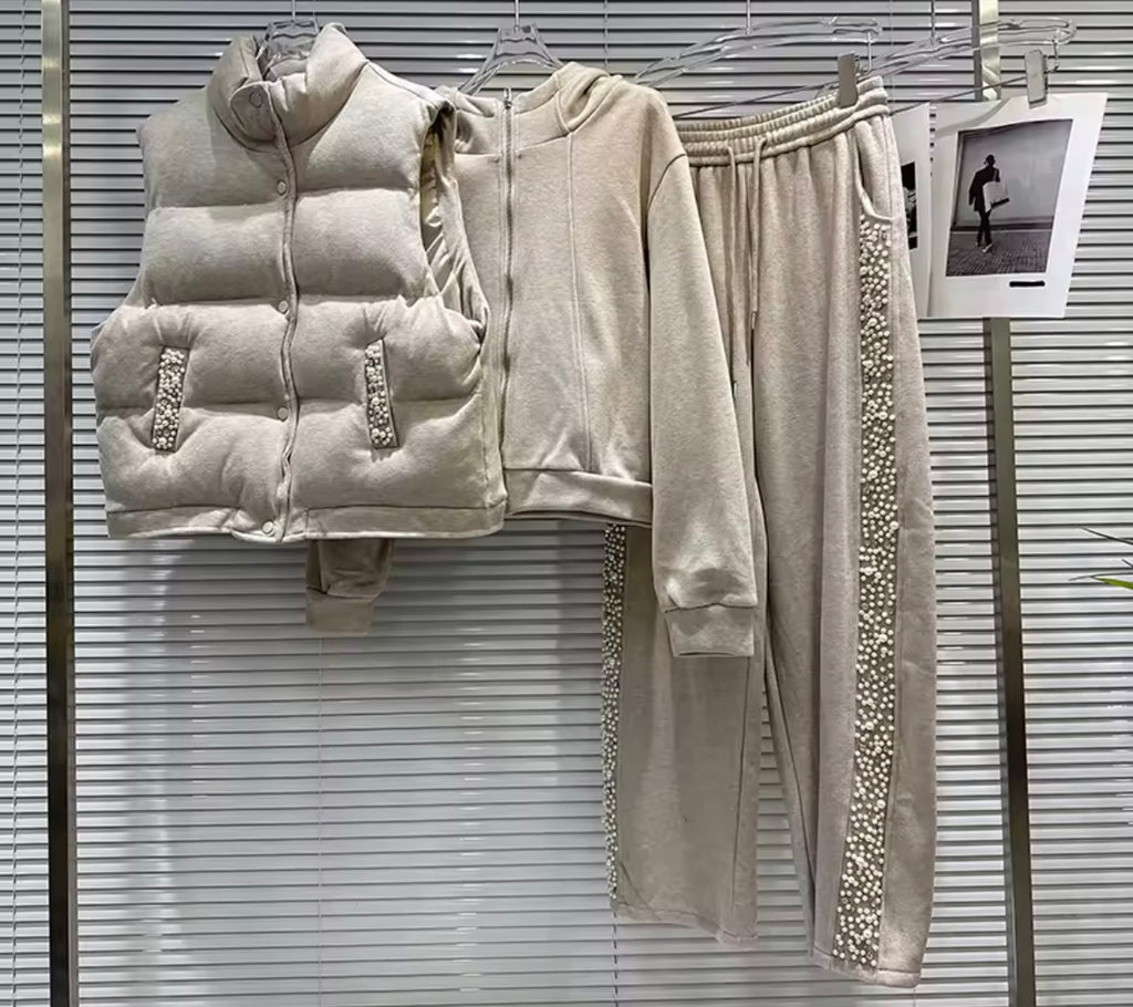 Women Rhinestone Full Sleeve Blazer Two Piece Fashion Pant Set