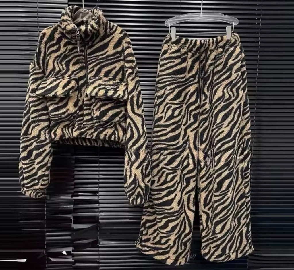 Women Fashion Animal Print Sweater Two Piece Pant Set