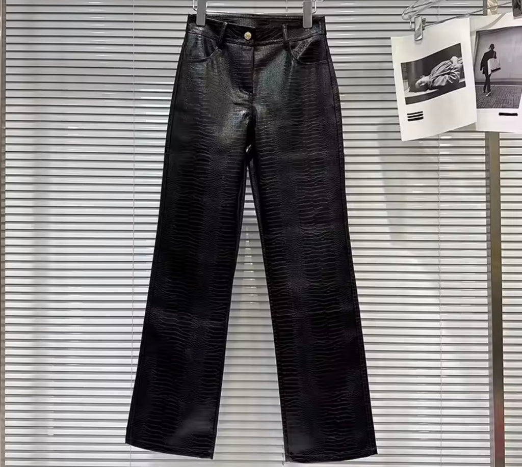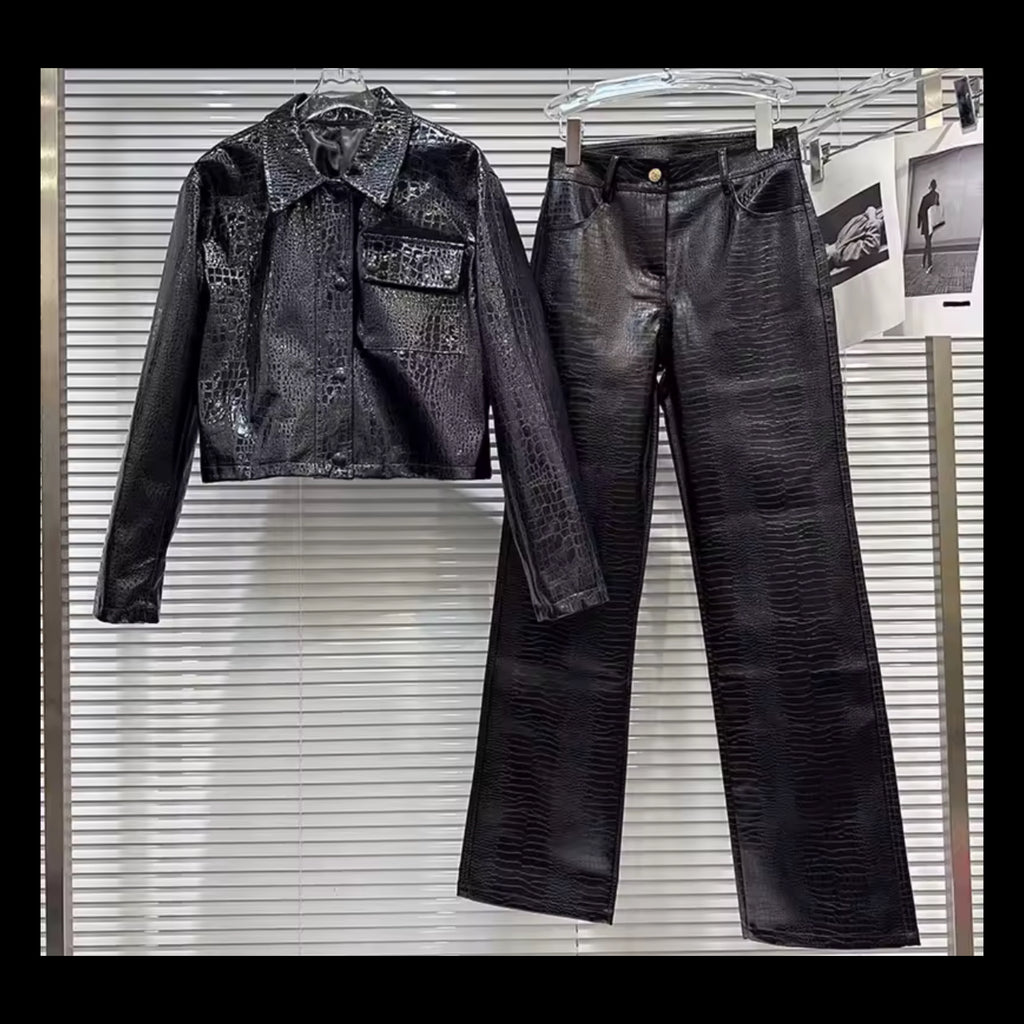 Women Sexy Lace Strapless Corset Two Piece Faux Leather Pant Set