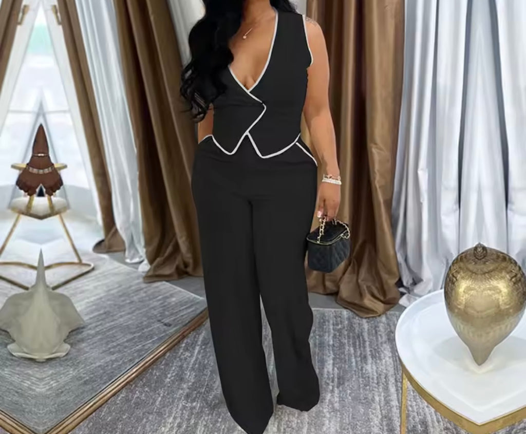 Women Fashion Sleeveless Striped Vest Two Piece Pant Set
