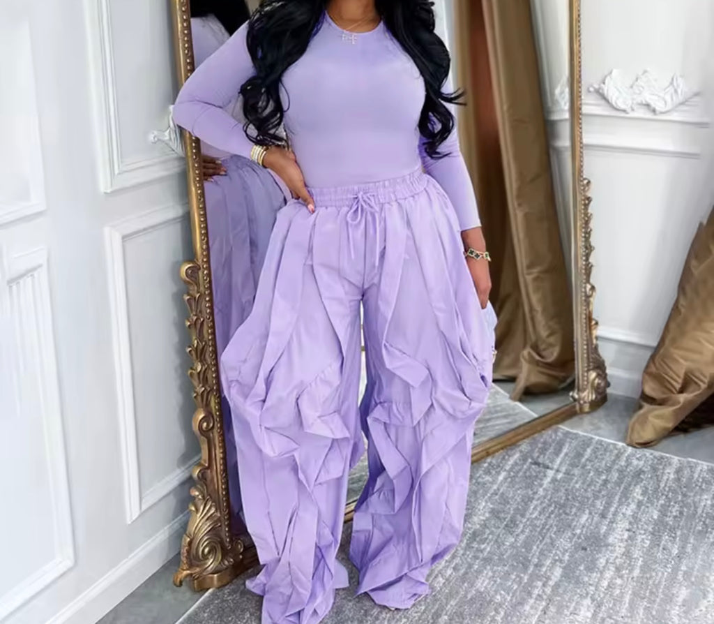 Women Sexy Cut Out Full Sleeve Crop Two Piece Wrap Pant Set