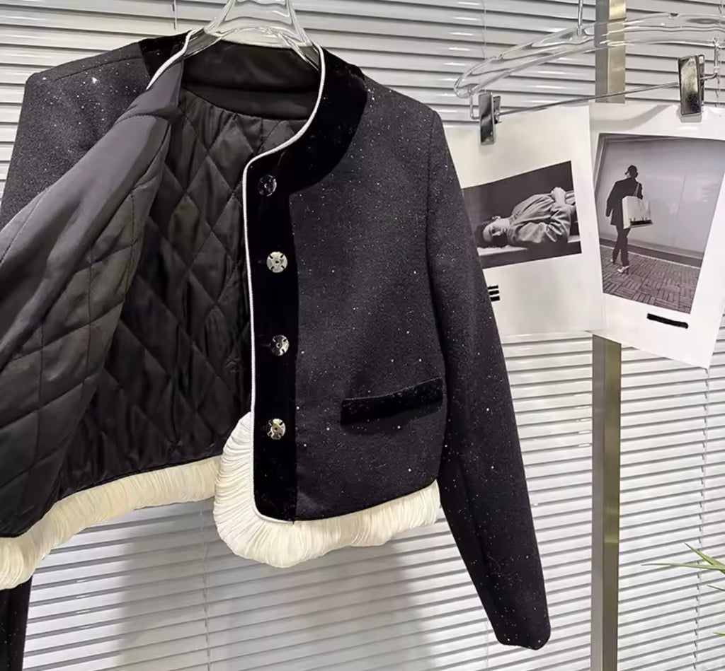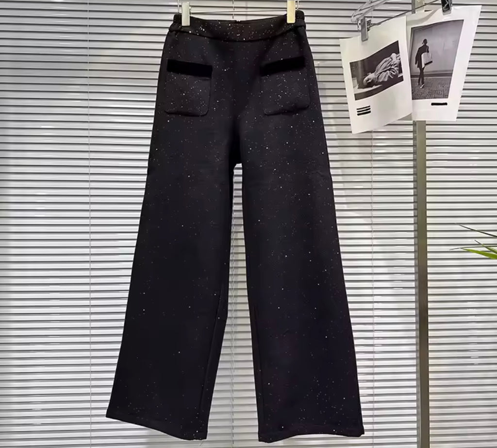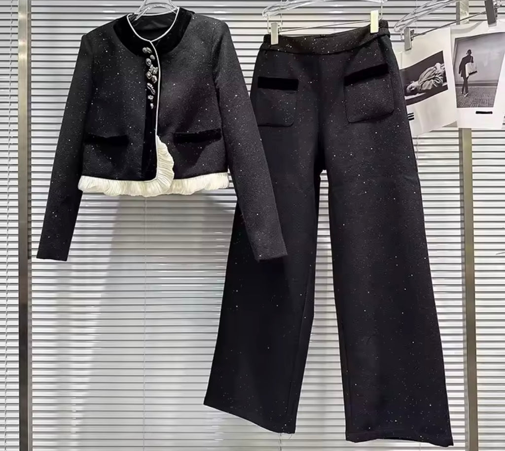 Women Rhinestone Full Sleeve Blazer Two Piece Fashion Pant Set