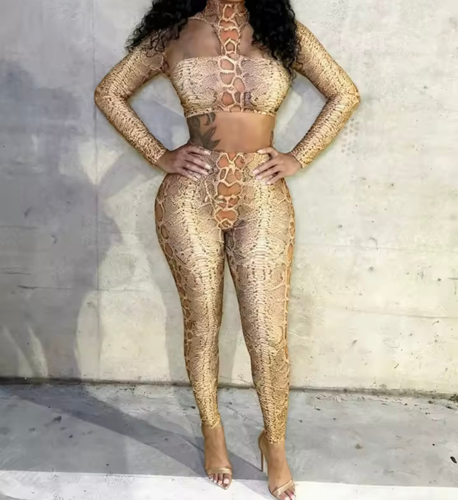 Women Sexy Fashion Animal Print Crop Two Piece Pant Set