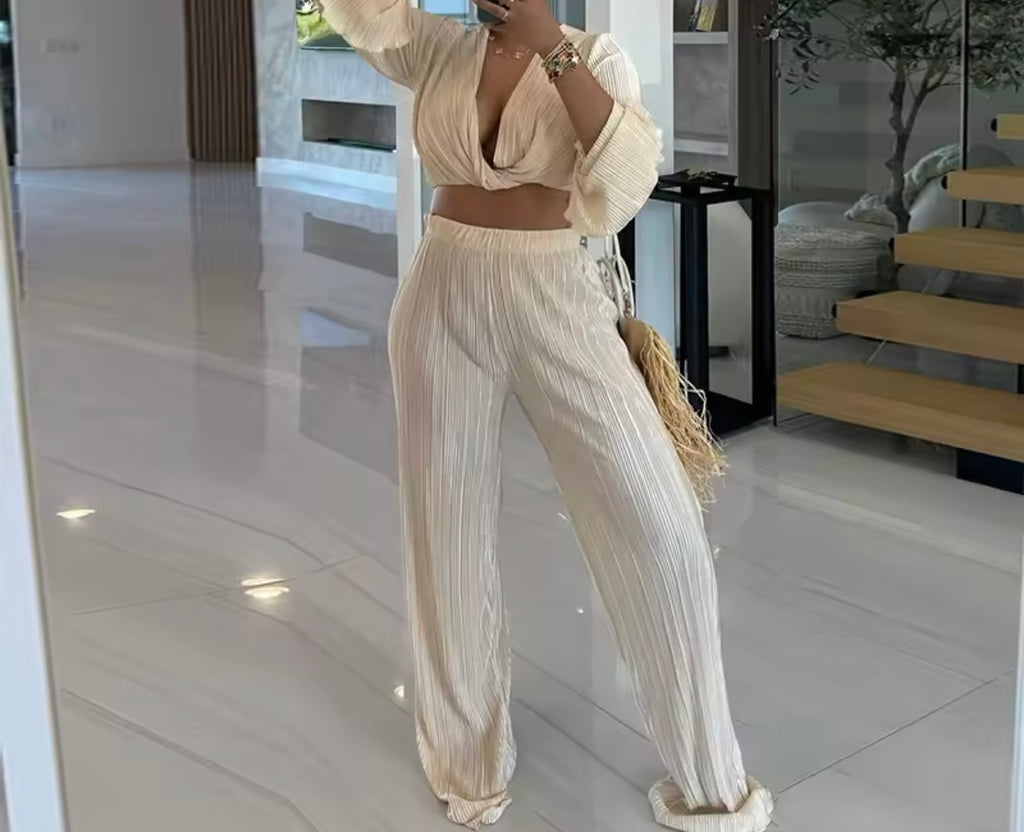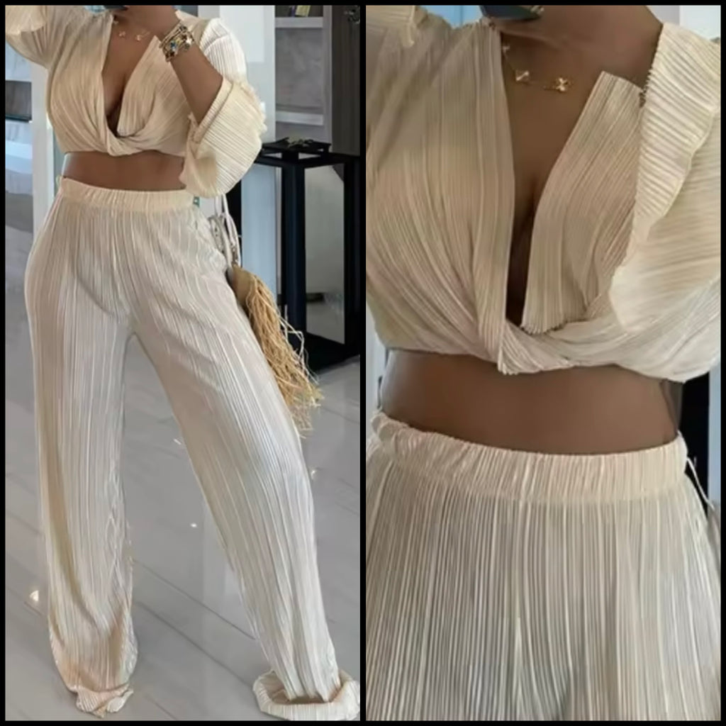 Women Sexy Full Sleeve Crop Solid Color Two Piece Pant Set