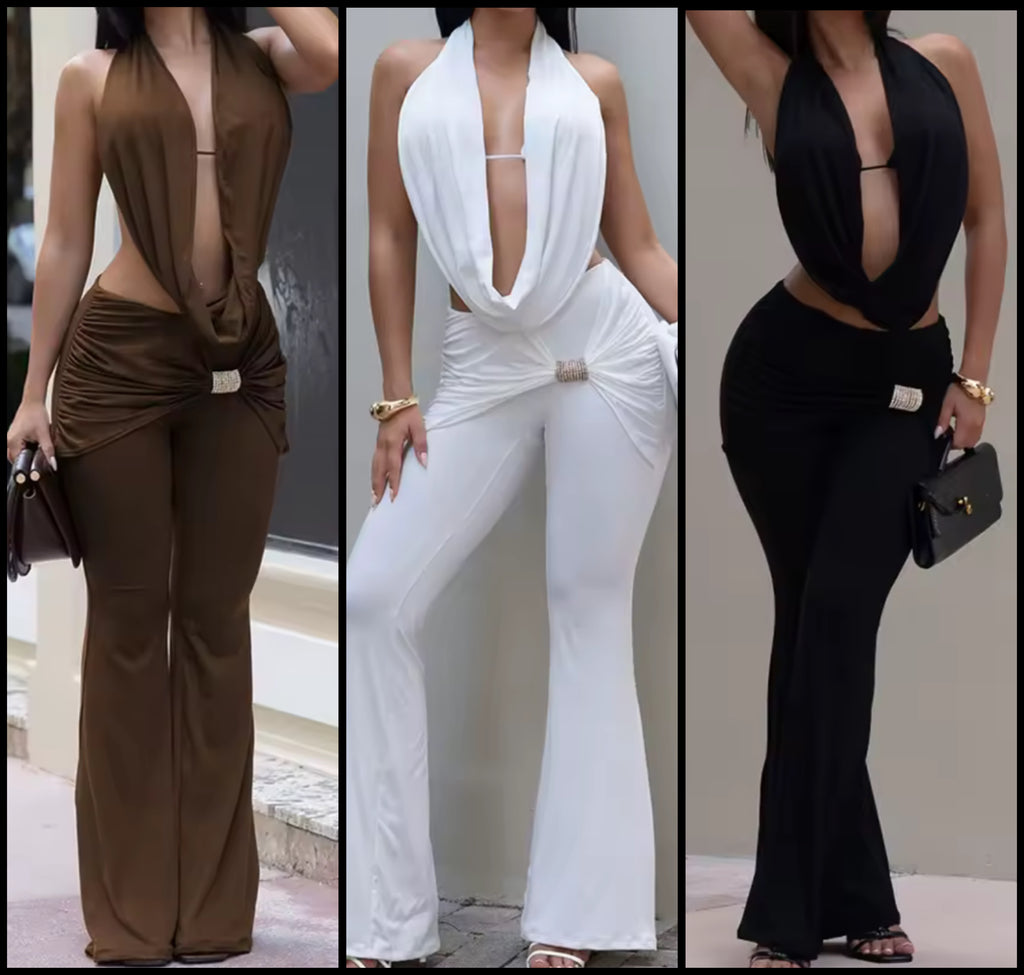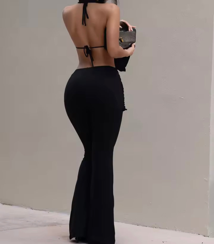 Women Sexy Halter V-Neck Open Back Two Piece Pant Set
