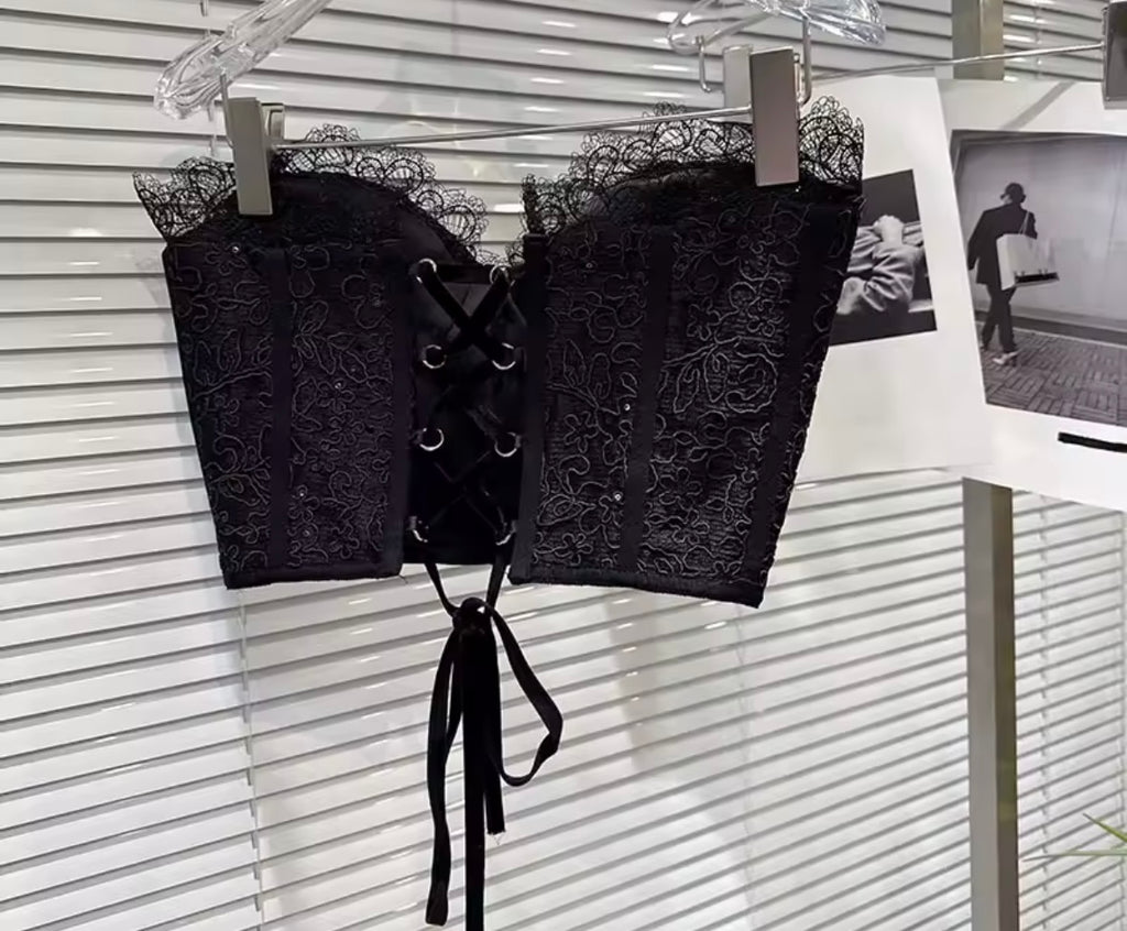 Women Sexy Strapless Polka Dot Open Back Two Piece Pant Set