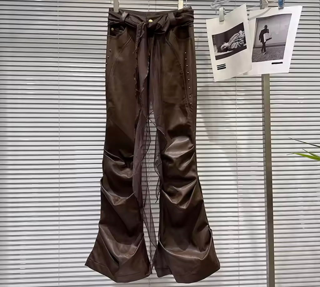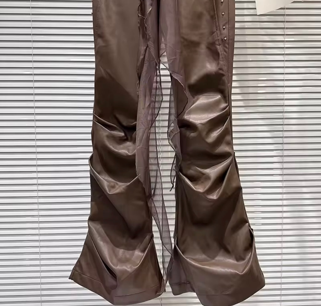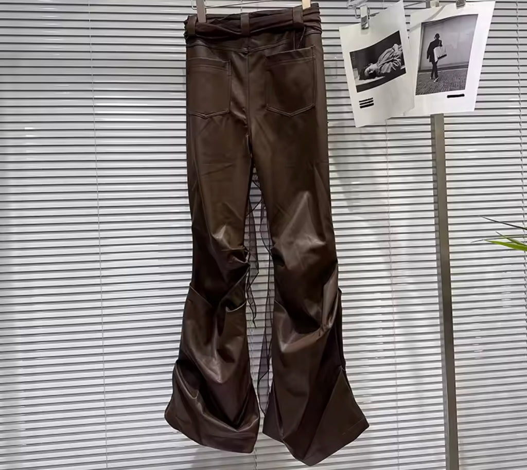 Women Fashion Ruffled Faux Leather Pants