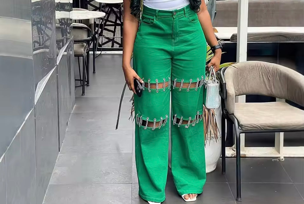 Women Fashion Ruffled Faux Leather Pants