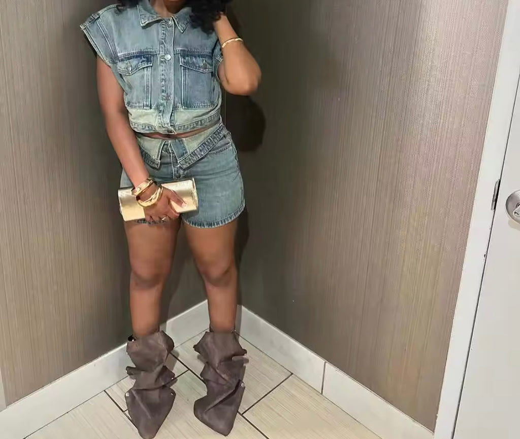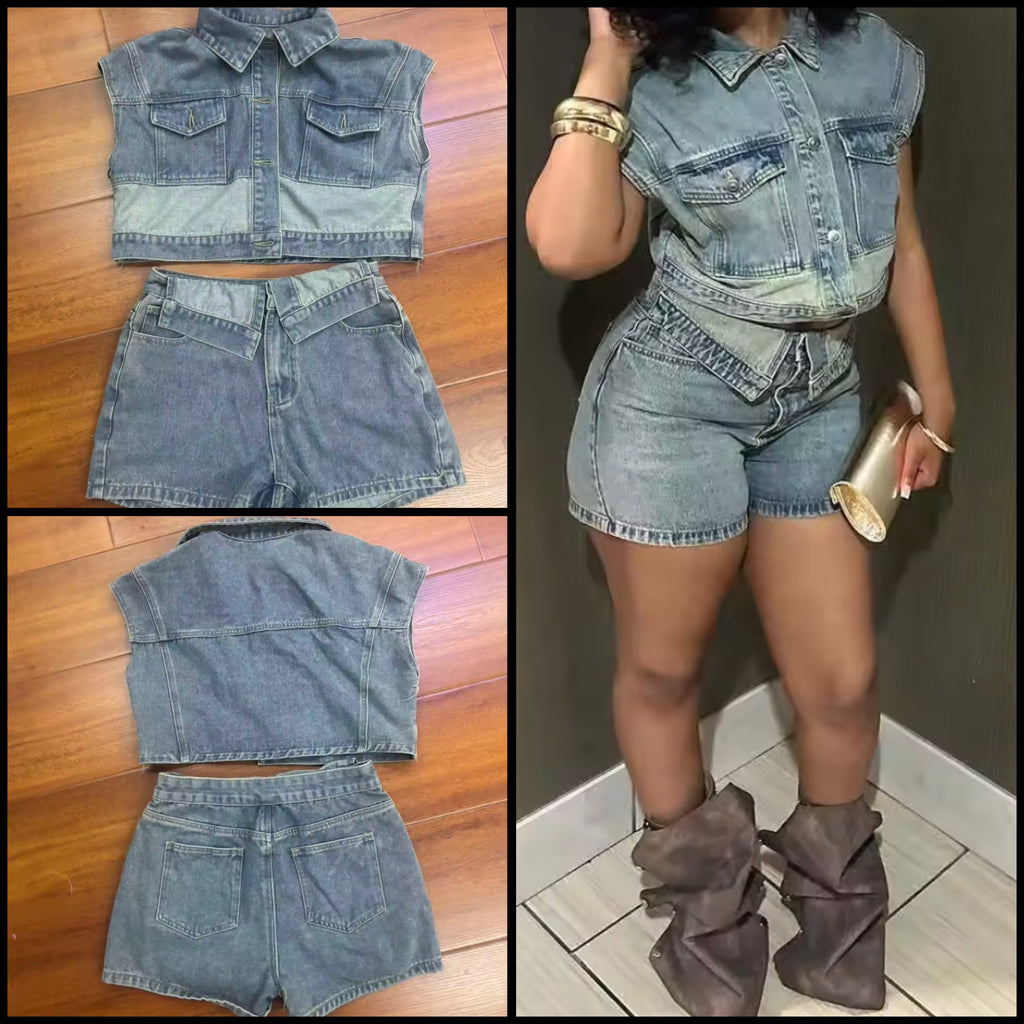Women Fashion Two Piece Sexy Crop Top Short Set