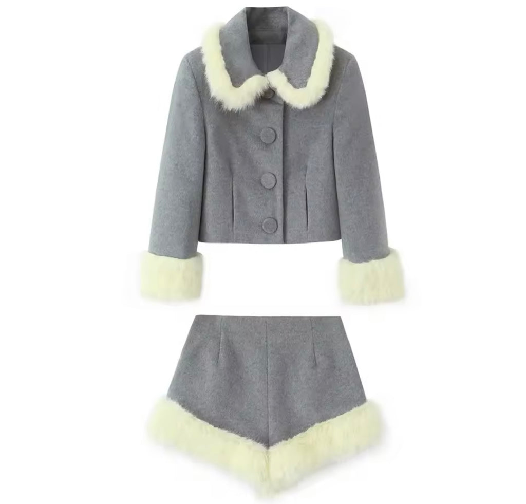 Women Bow Strapless Gray Two Piece Fashion Short Set