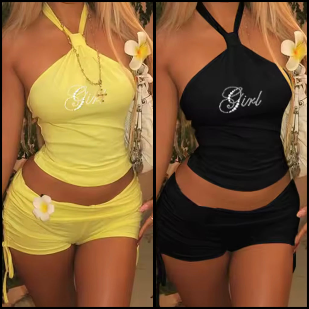 Women Fashion Two Piece Sexy Crop Top Short Set